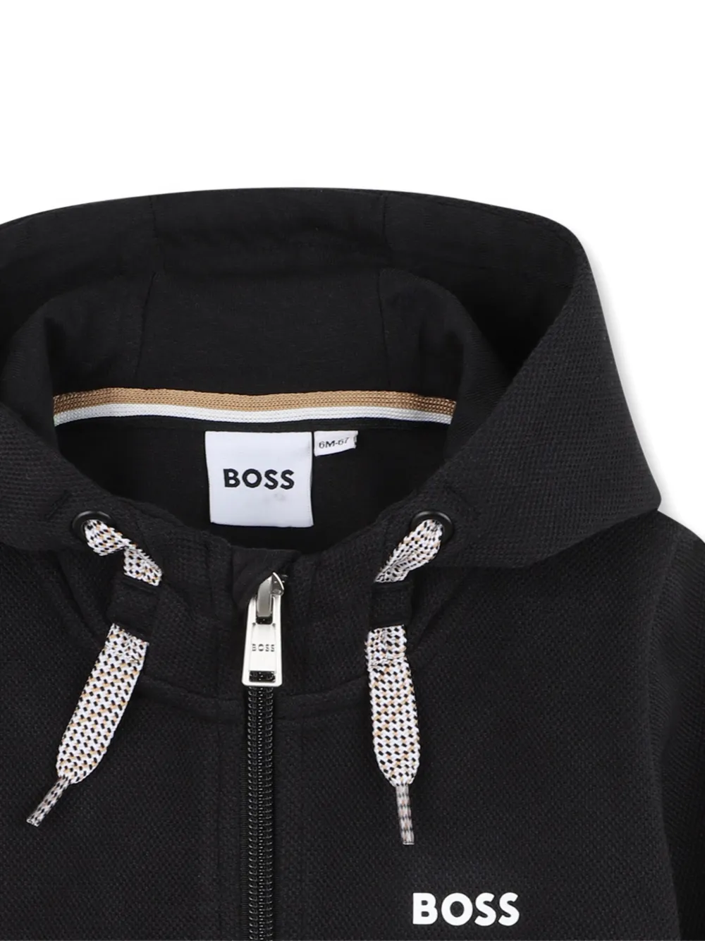Толстовка с капюшоном на молнии BOSS Kidswear, черный