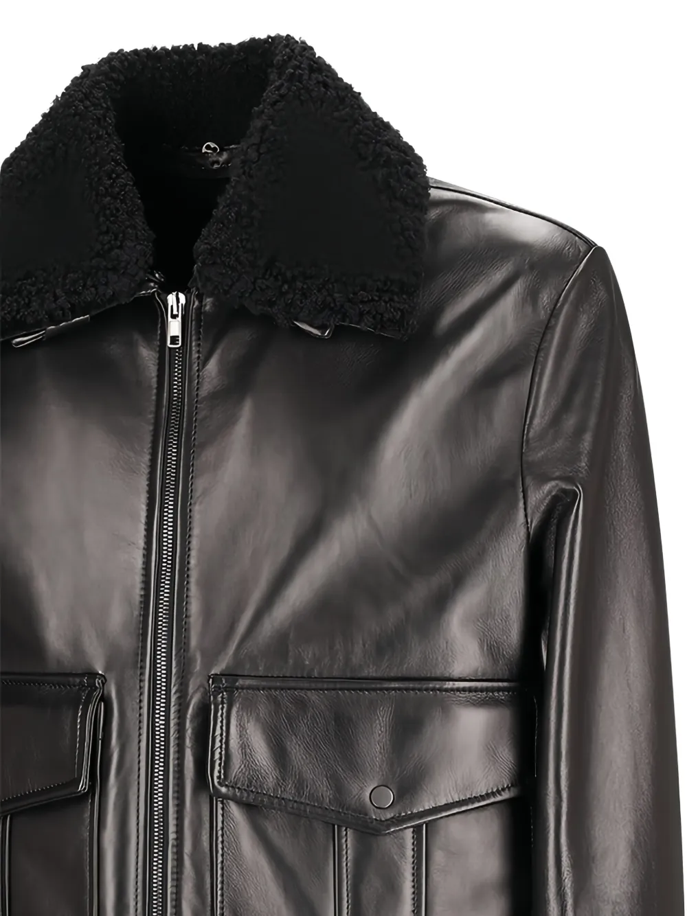 Черный воротник из овчины, застежка-молния, карманы с клапанами