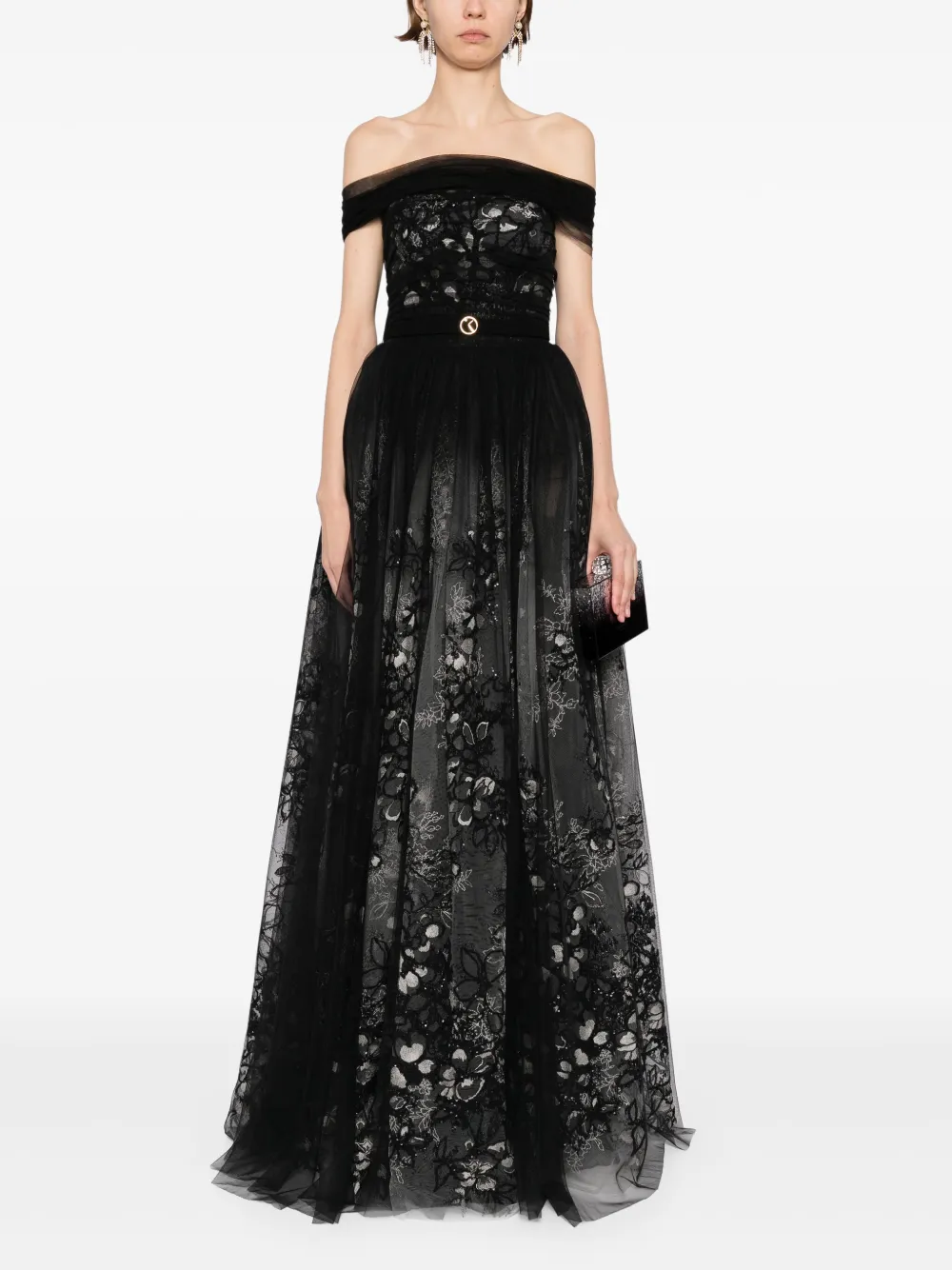 Платье из тюля со сборками Saiid Kobeisy, черный 392 954₽