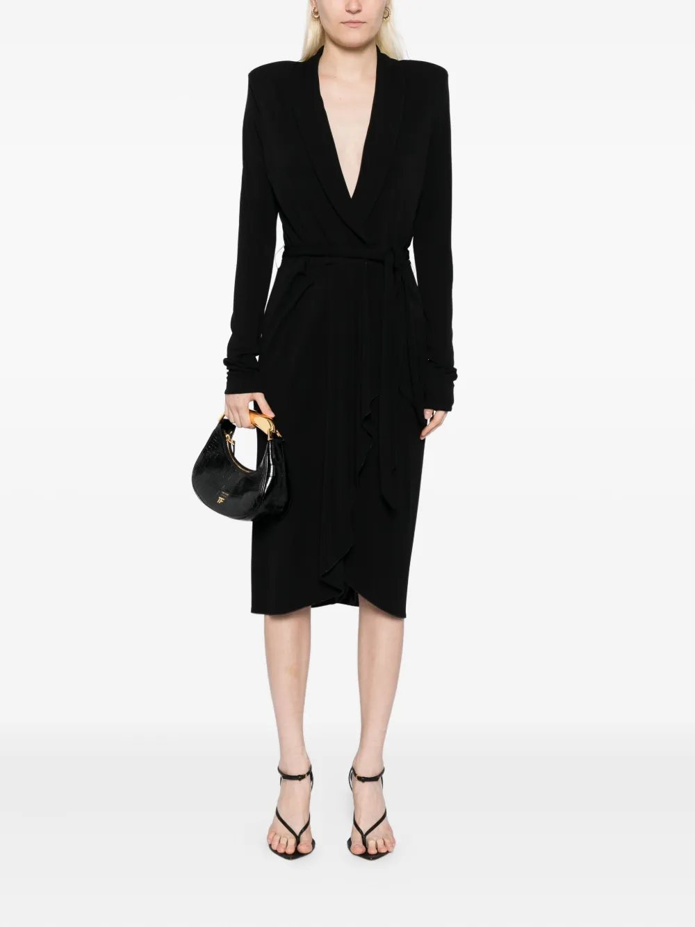 Платье с запахом и длинными рукавами TOM FORD, черный