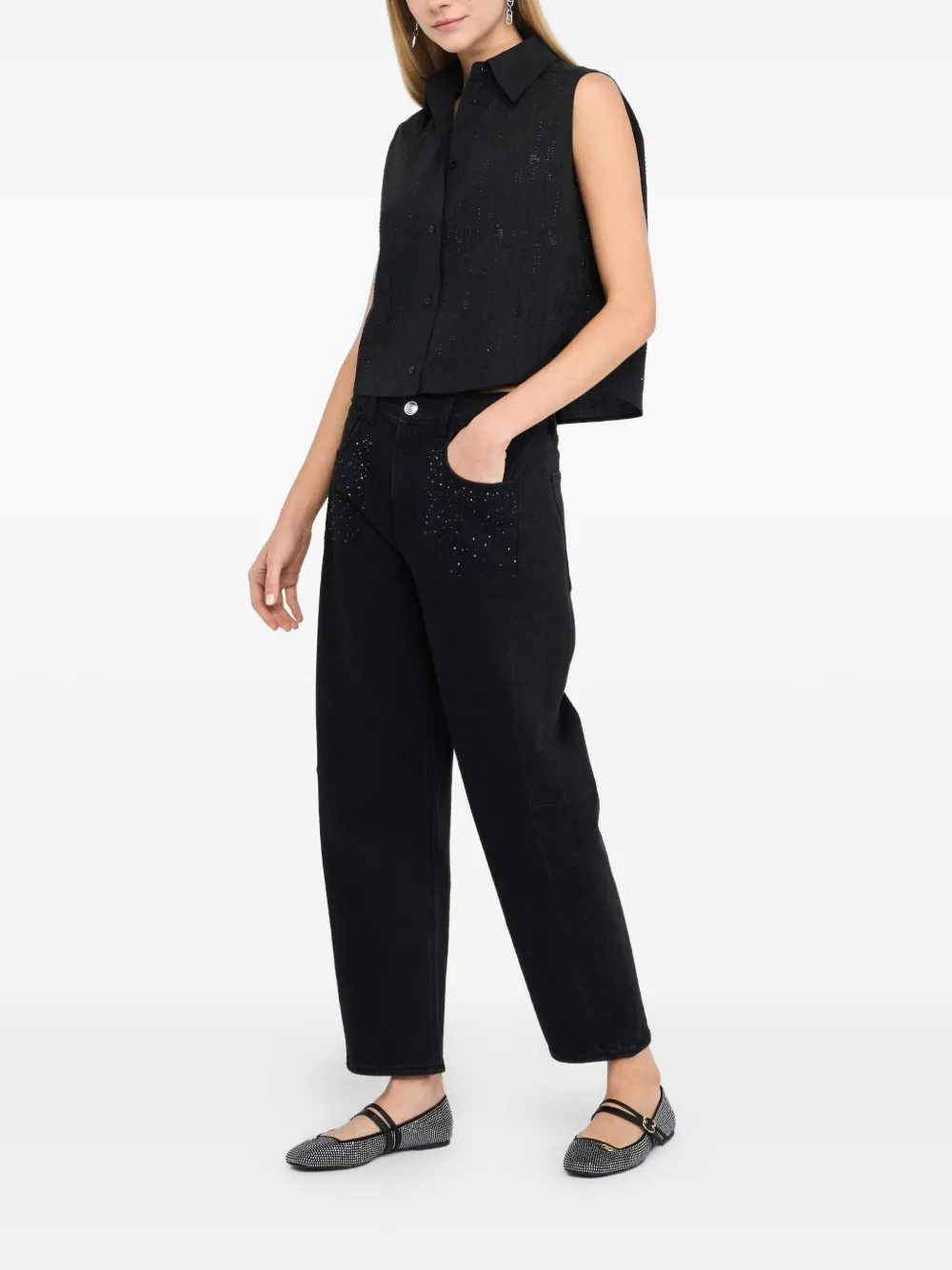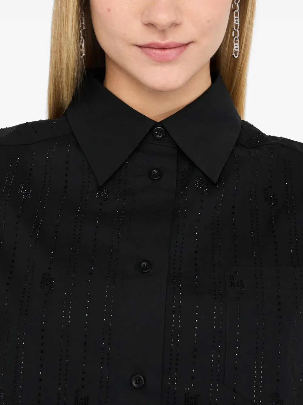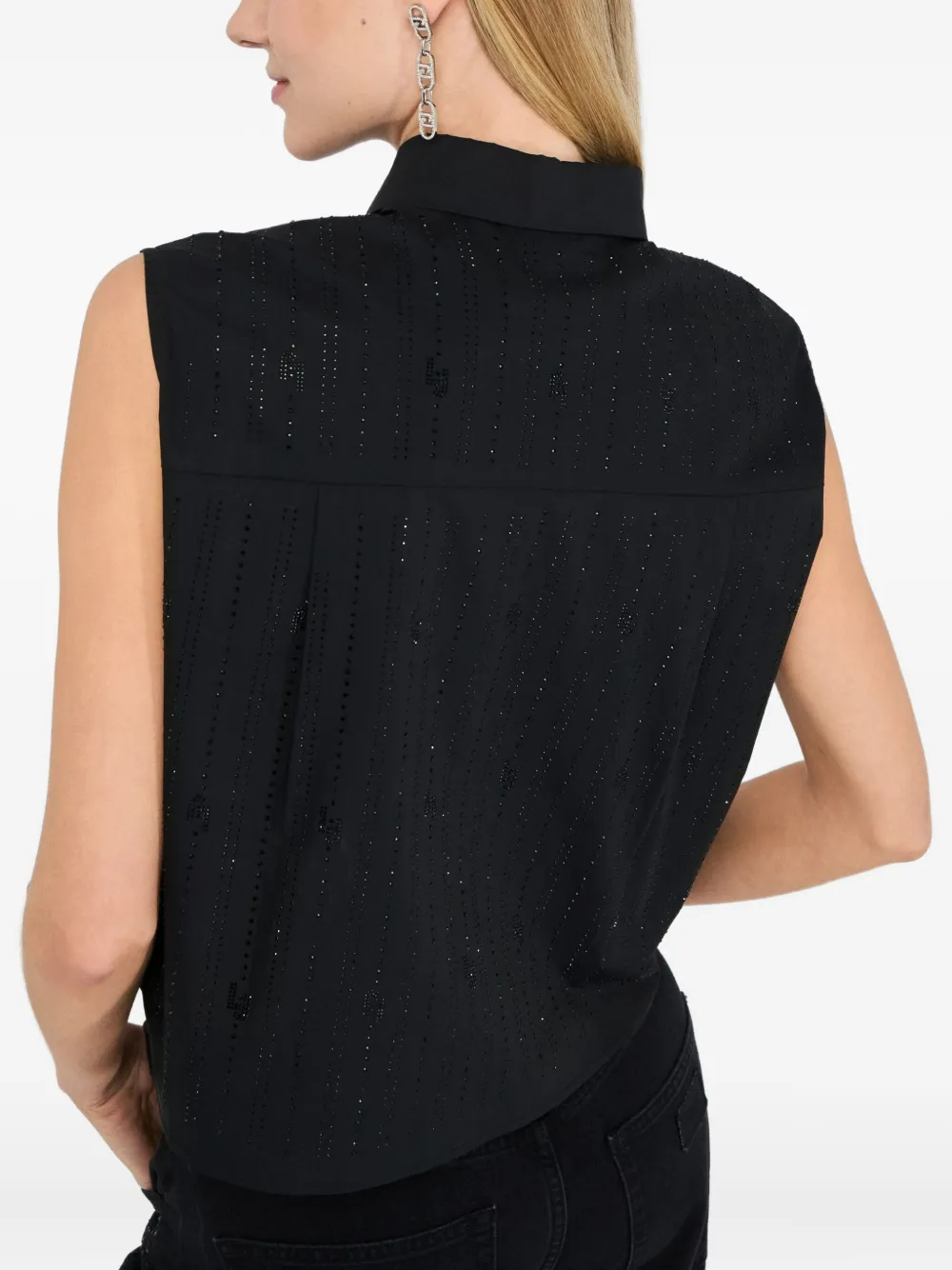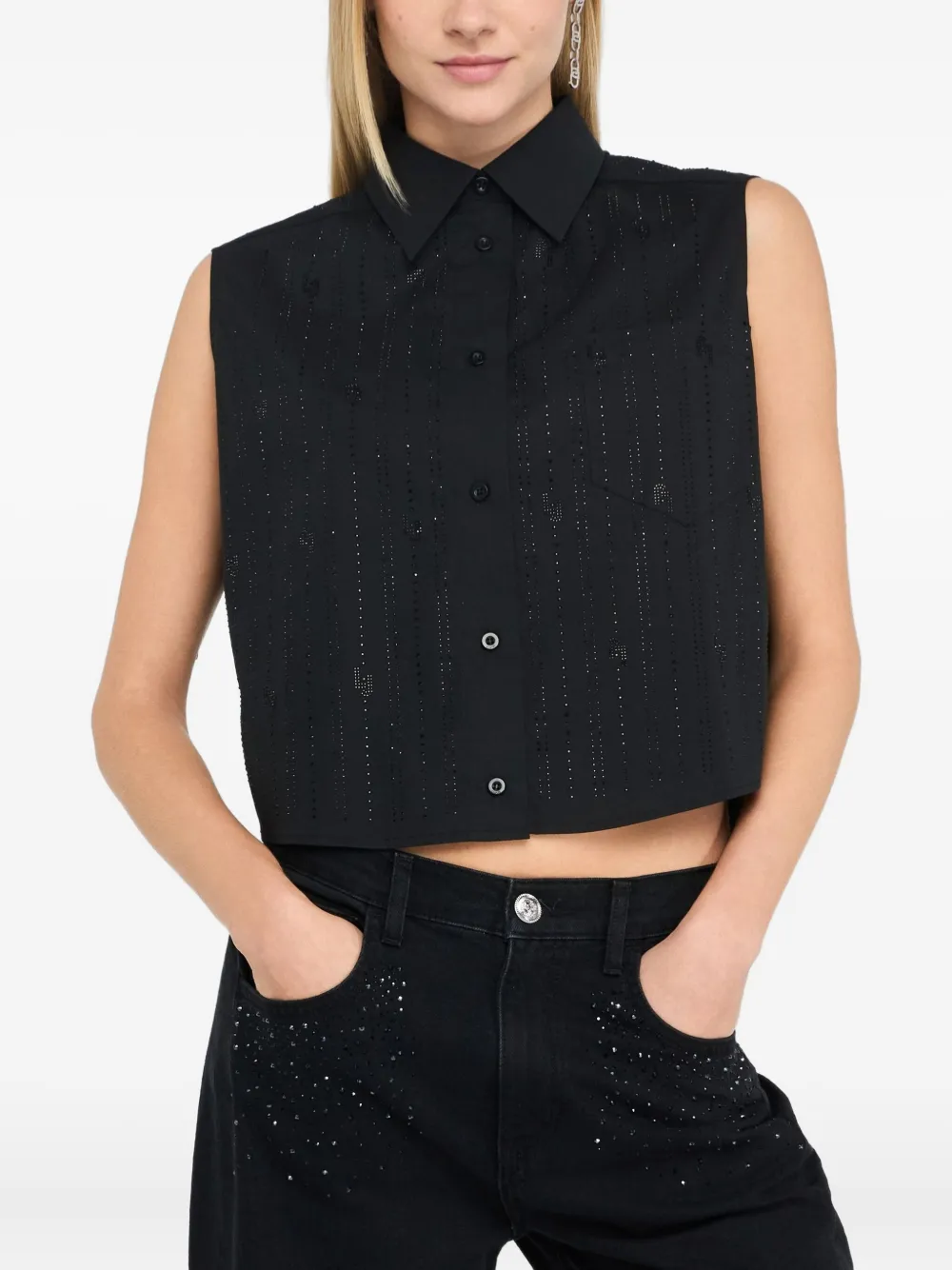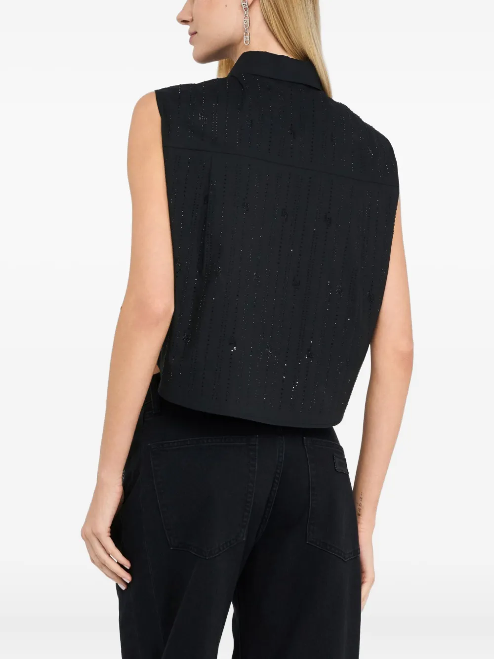 Хлопковый топ, украшенный стразами LIU JO, черный