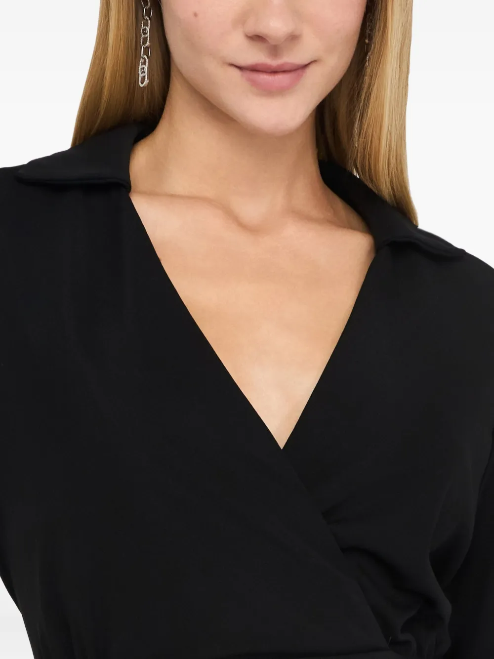 Черный V-образный вырез, регулируемый ремешок на талии, длинные рукава