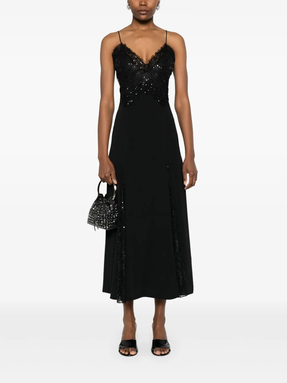 Платье миди, украшенное пайетками NISSA, черный