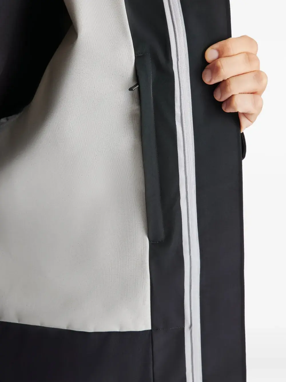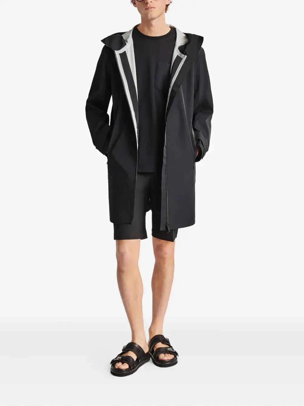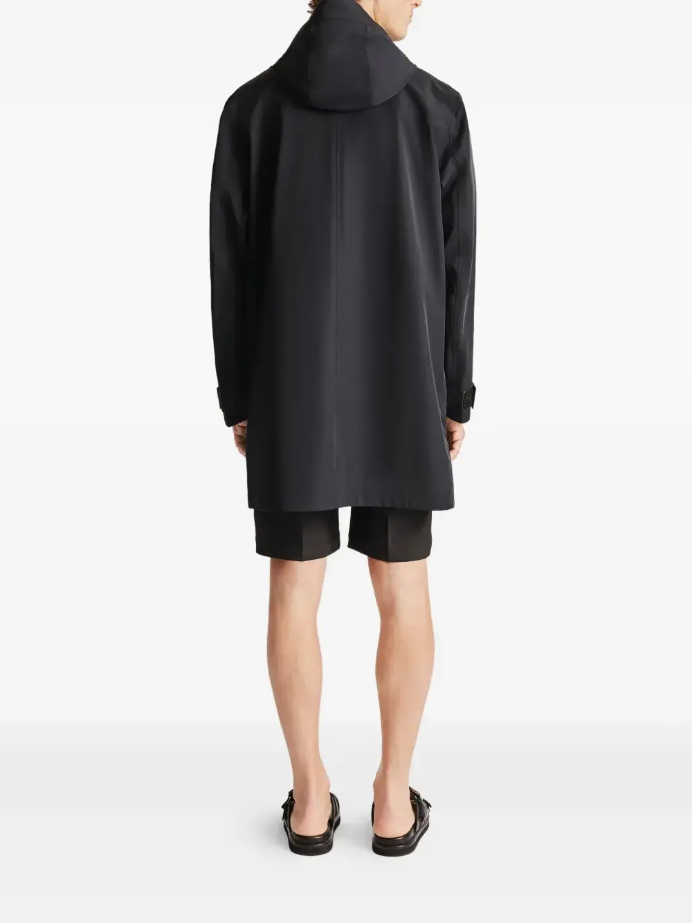 Черная застежка на пуговицы спереди, классический капюшон, два накладных кармана спереди, контрастная подкладка