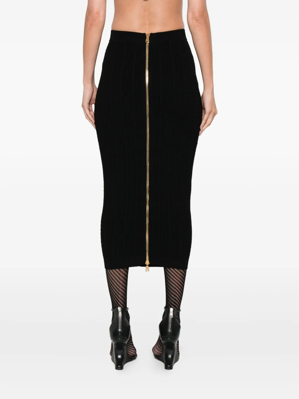 Юбка миди фактурной вязки BALMAIN, черный