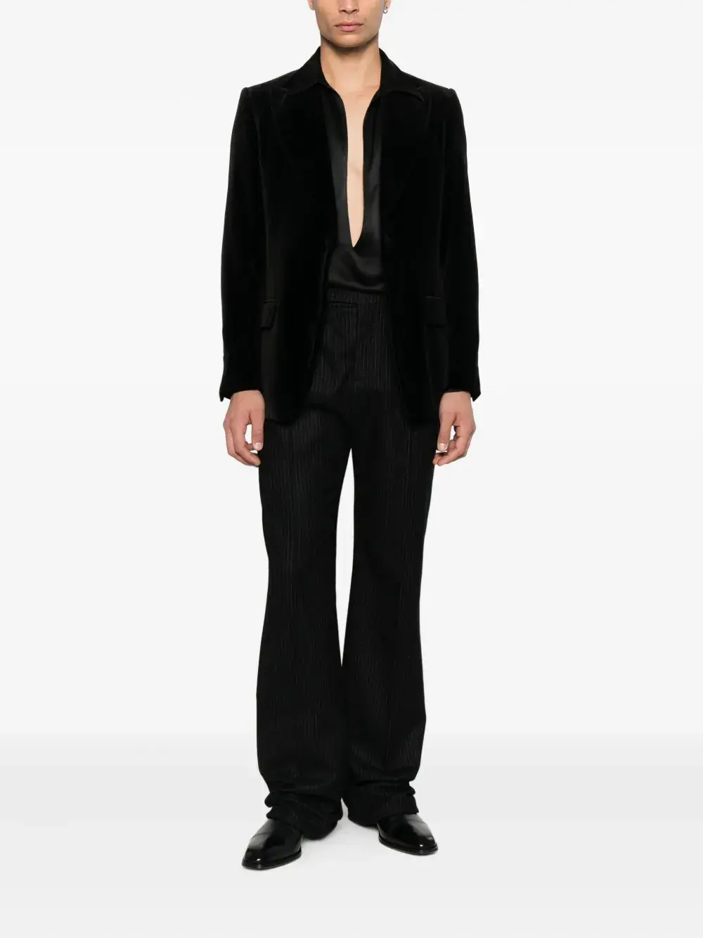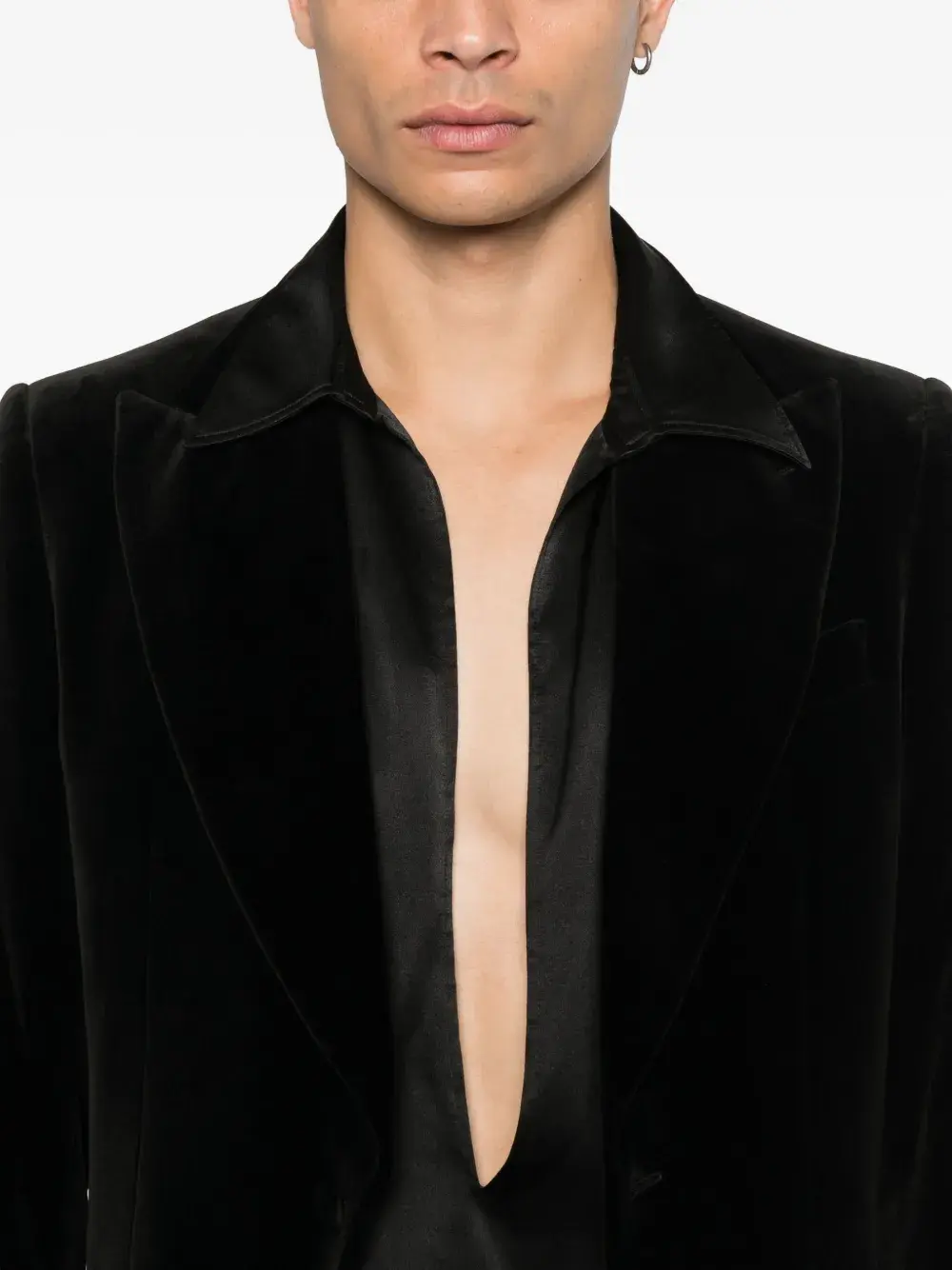 Черный однобортный пиджак с застежкой, отложным воротником, карманами с клапанами, длинными рукавами