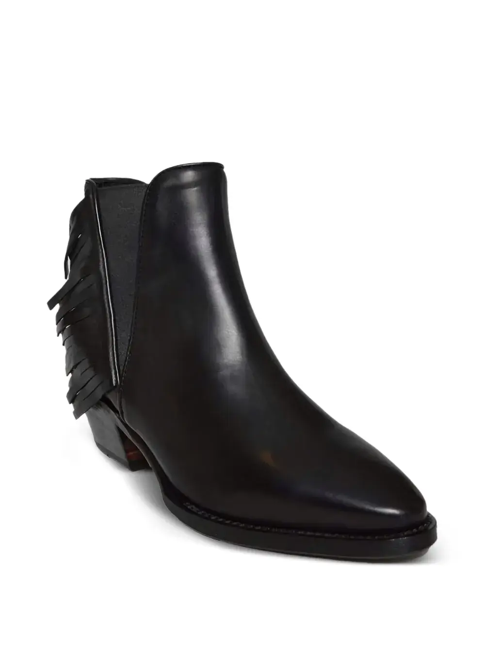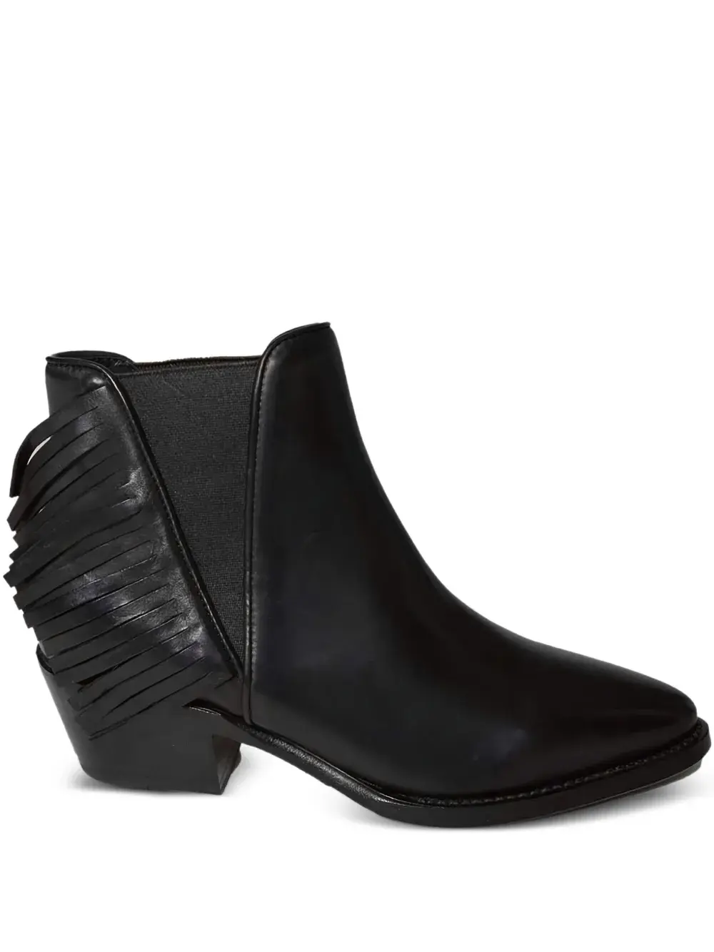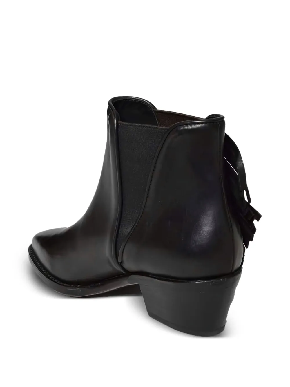 Черный заостренный носок, бахрома на пятке, свободный дизайн, блочный каблук