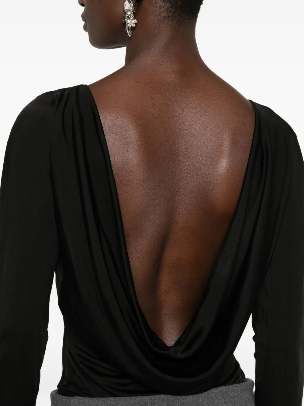 Черный с длинными рукавами, круглым вырезом и открытой спиной, высоким вырезом по бедру