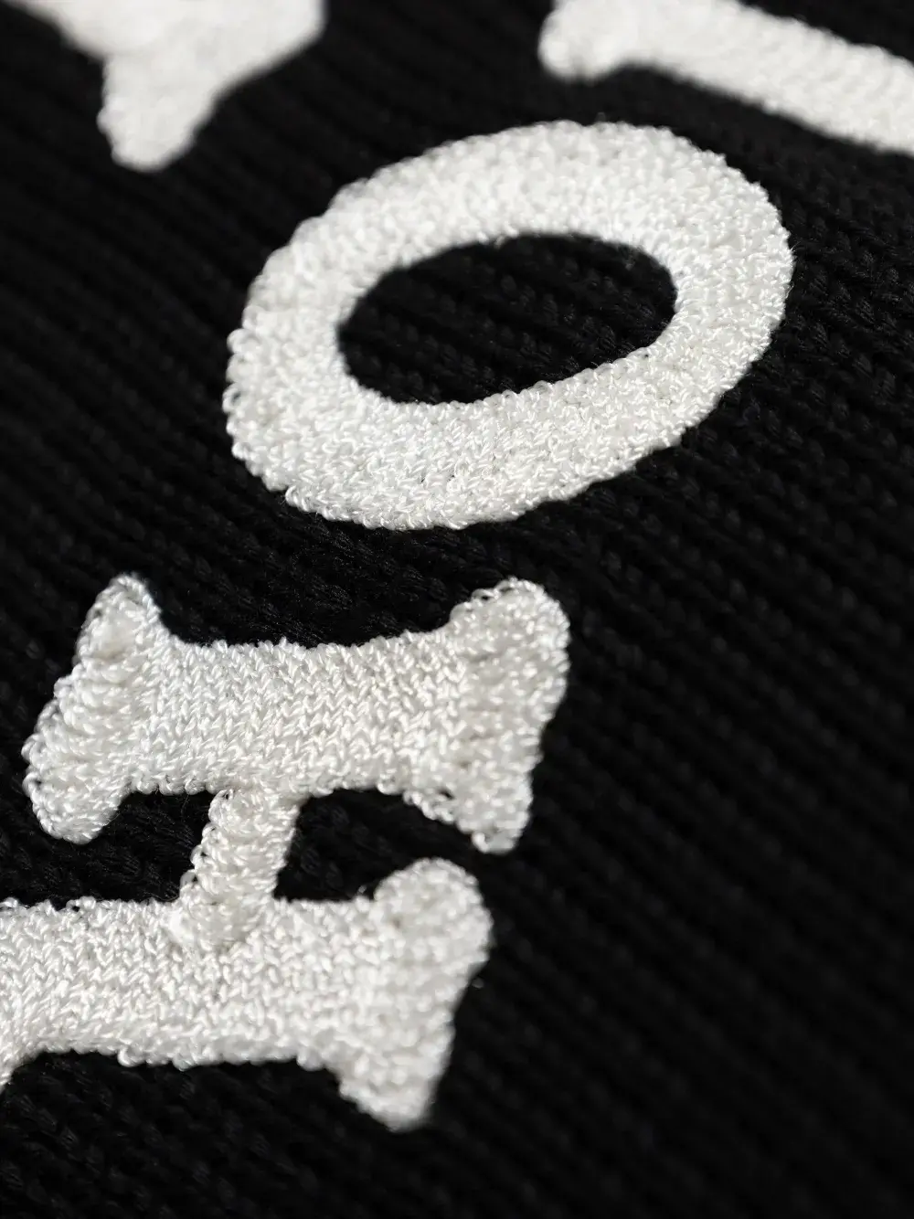 Черный логотип спереди, ребристый круглый вырез горловины, длинные рукава, ребристые манжеты и подол