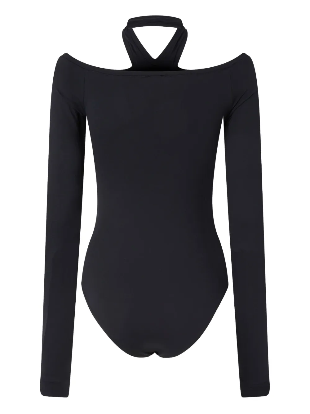 Черная кофта с длинными рукавами и халтер-воротом. Напоминаем, что эту вещь следует примерять поверх собственной одежды.