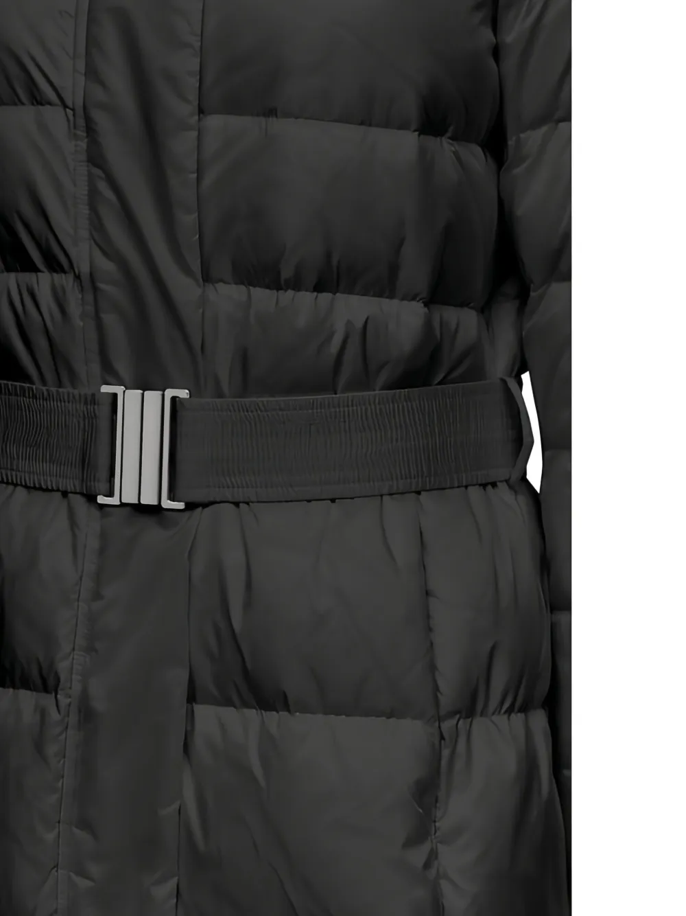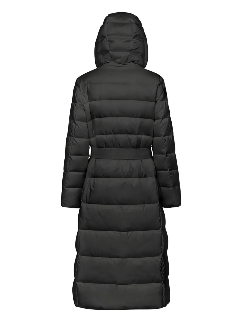 Черный стеганый дизайн, капюшон, пояс на талии, длинные рукава, прямой подол