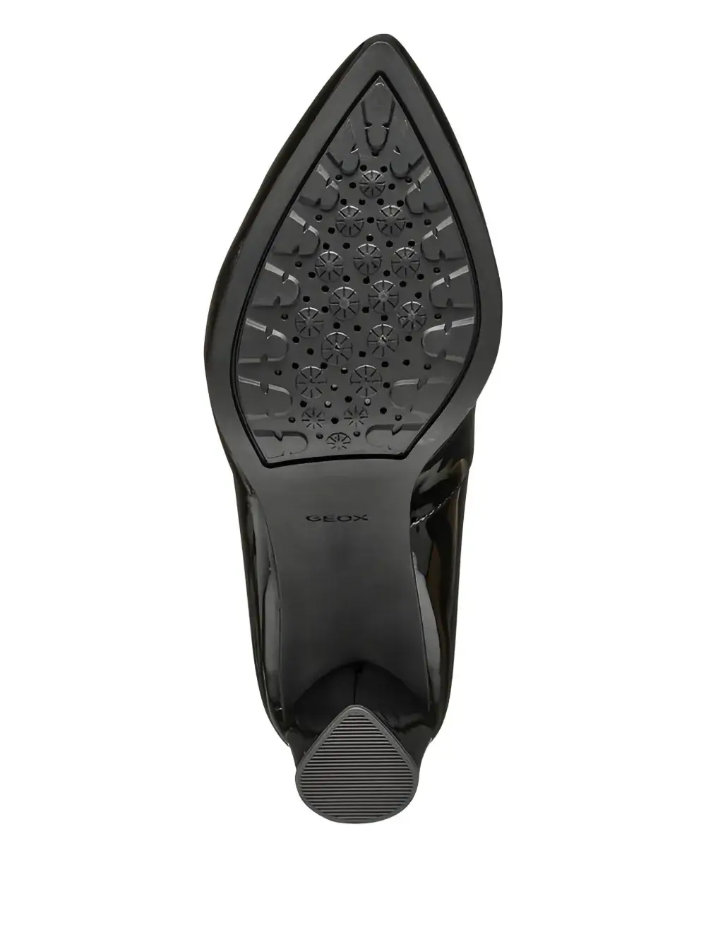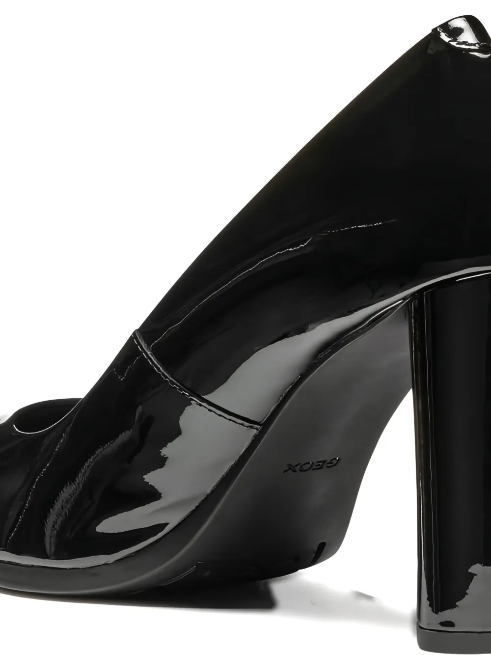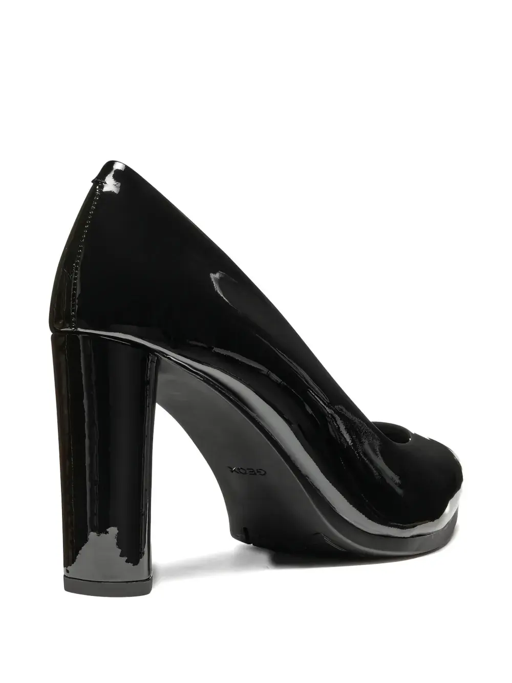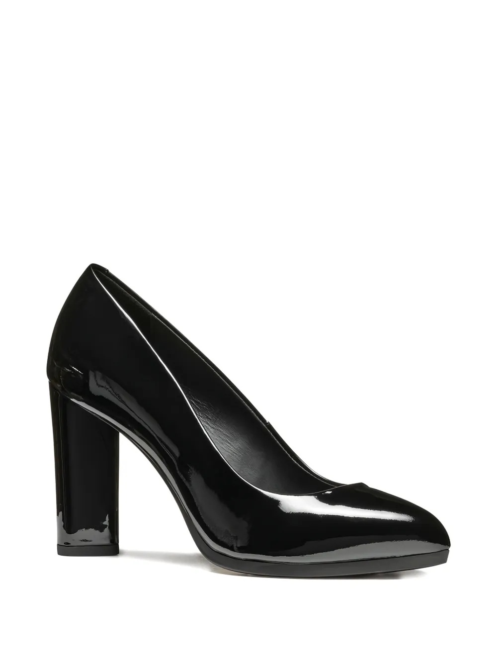 Черные кожаные туфли с лакированной отделкой, блочный каблук, острый носок, низкий вырез