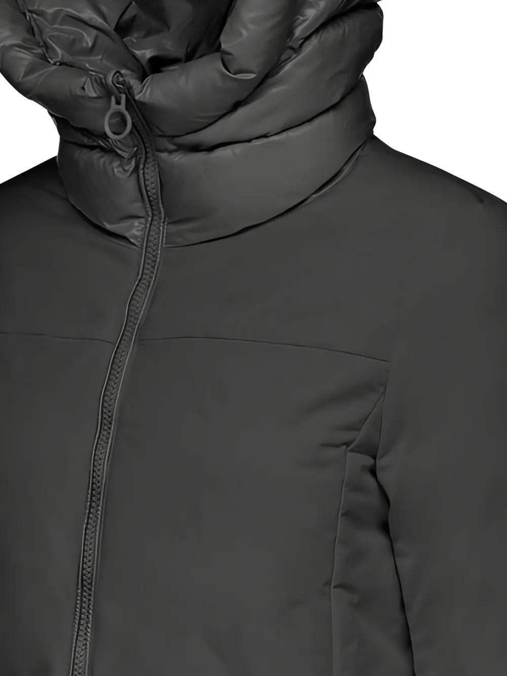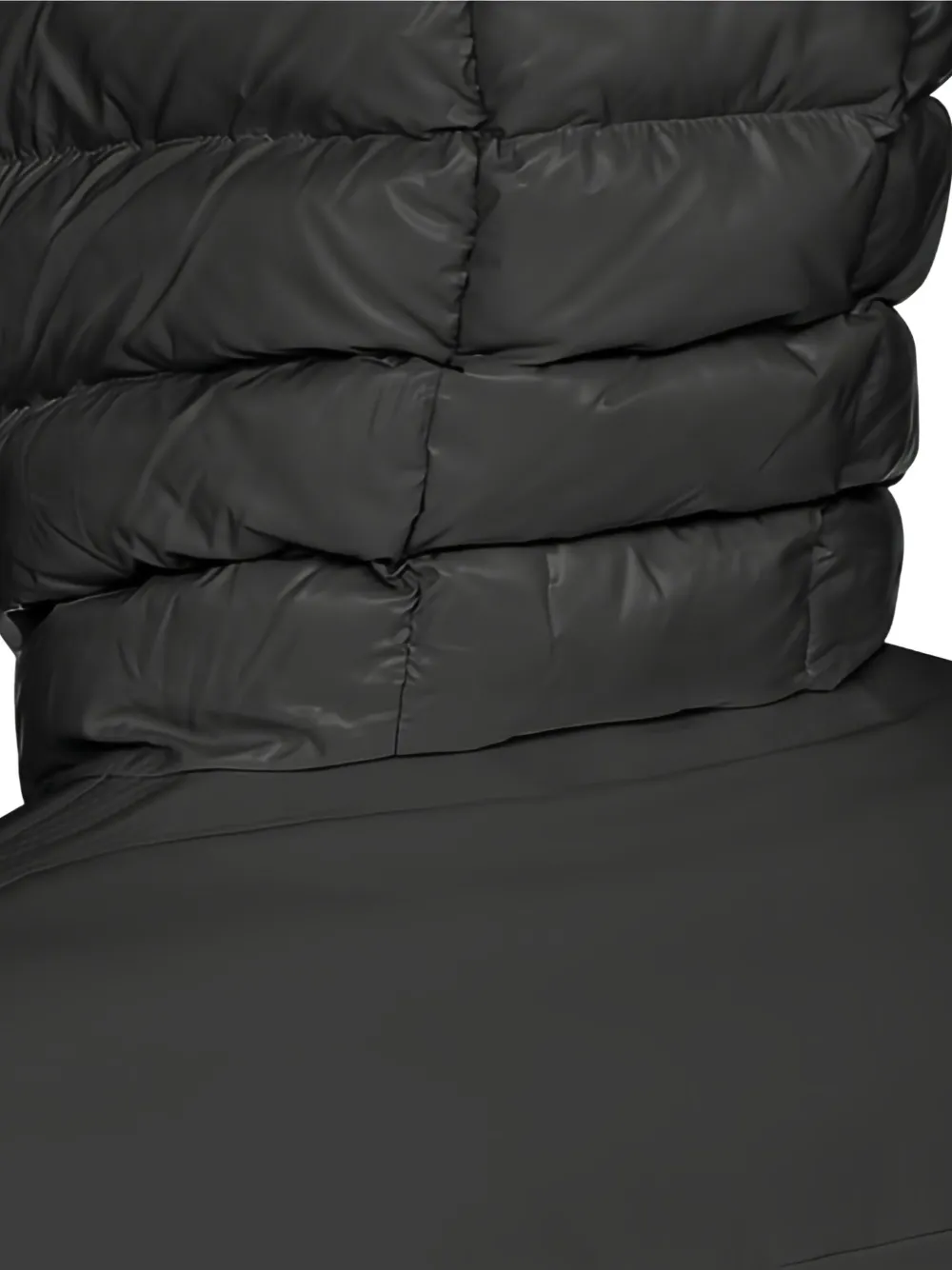 Черный стеганый капюшон, двухсторонняя застежка-молния спереди, длинные рукава, высокий ворот, прямой подол