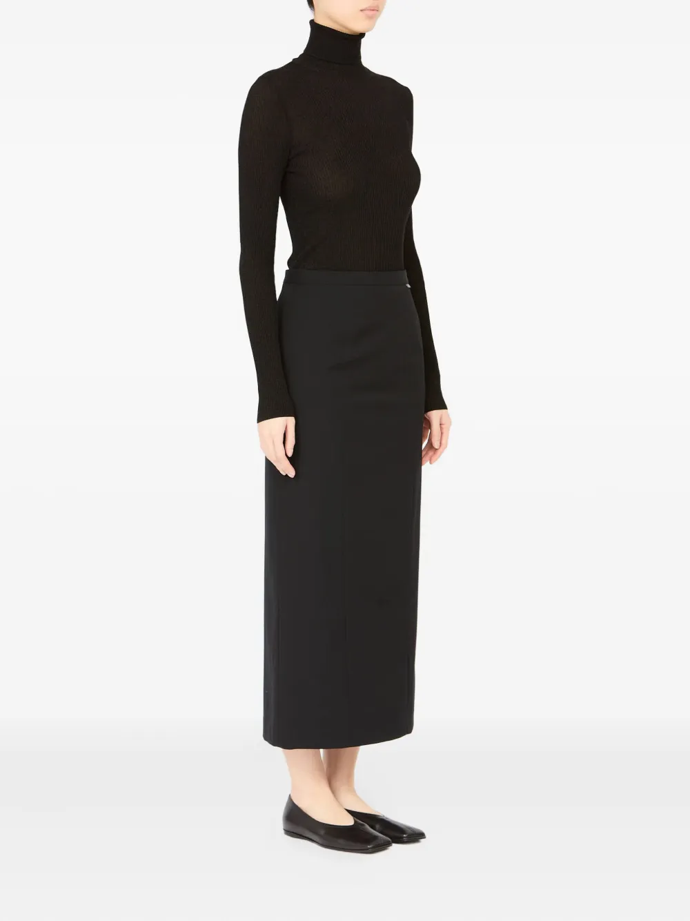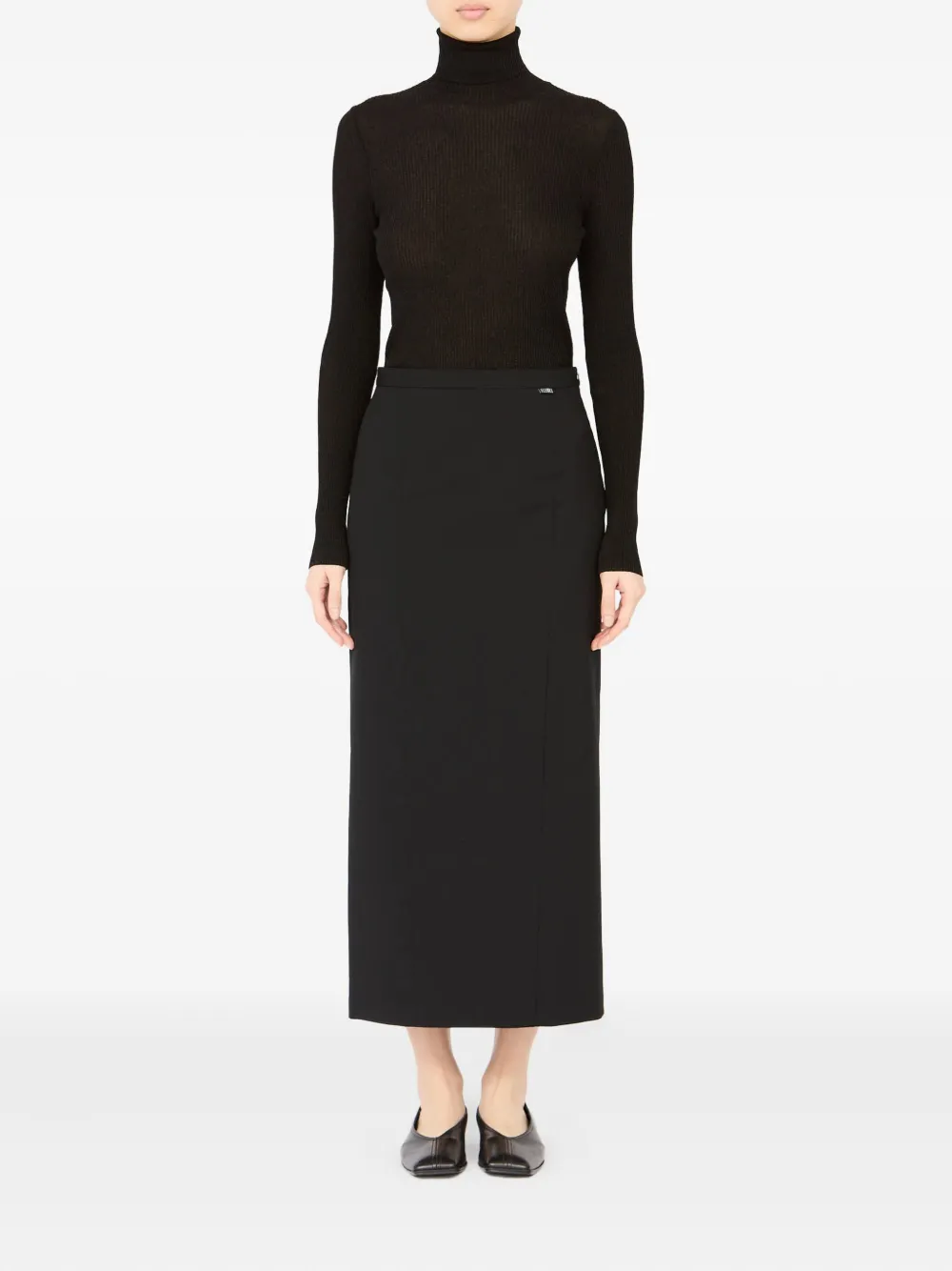 Черная трубчатая форма, потайная застежка-молния сбоку, шлица сзади, прямой подол