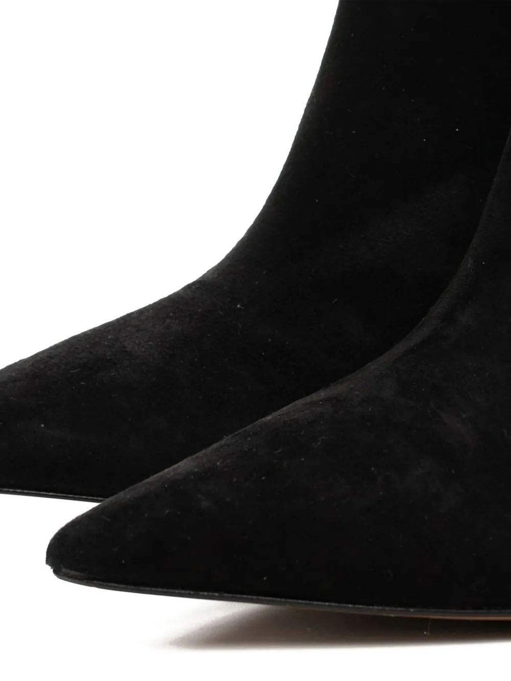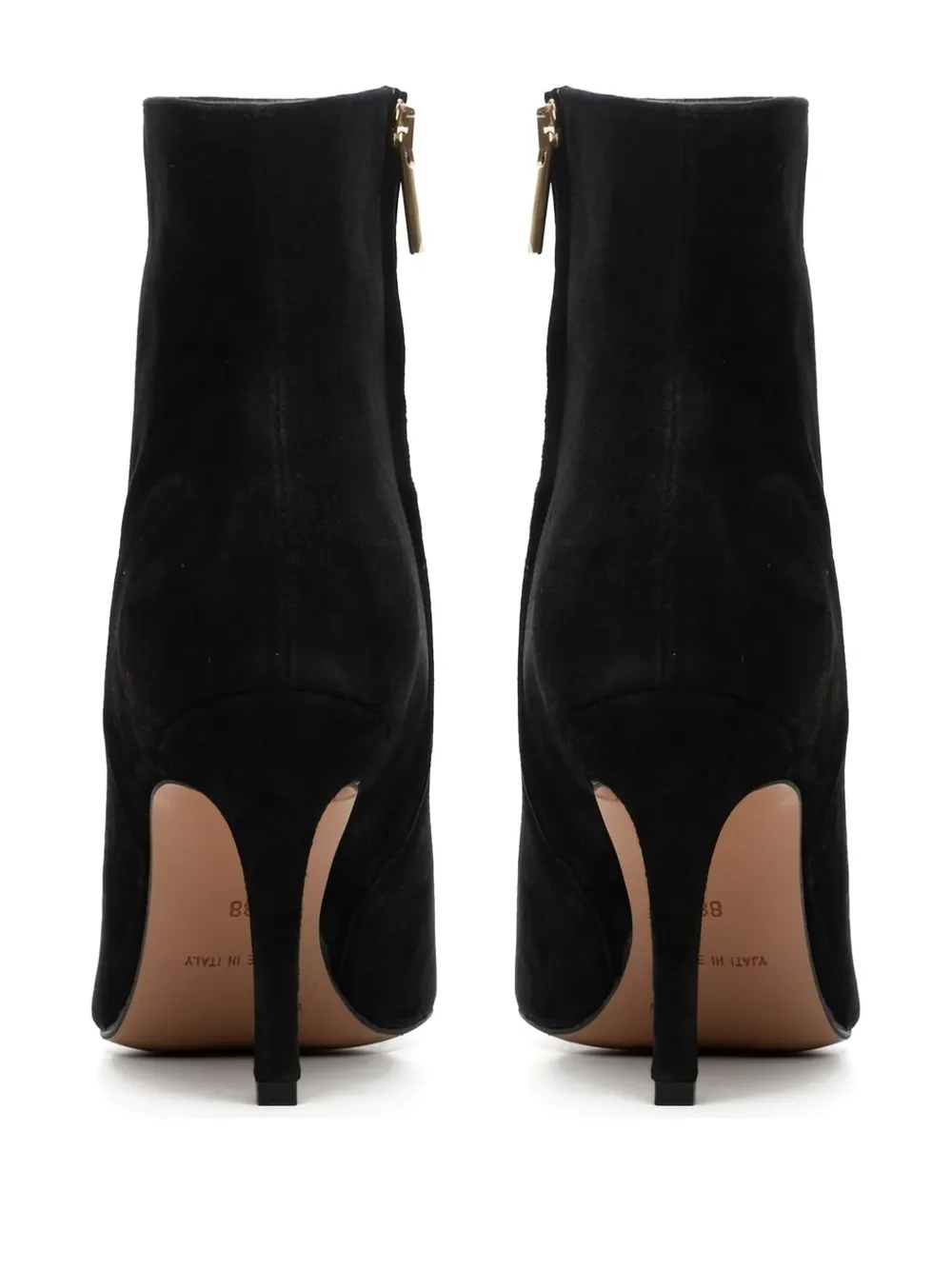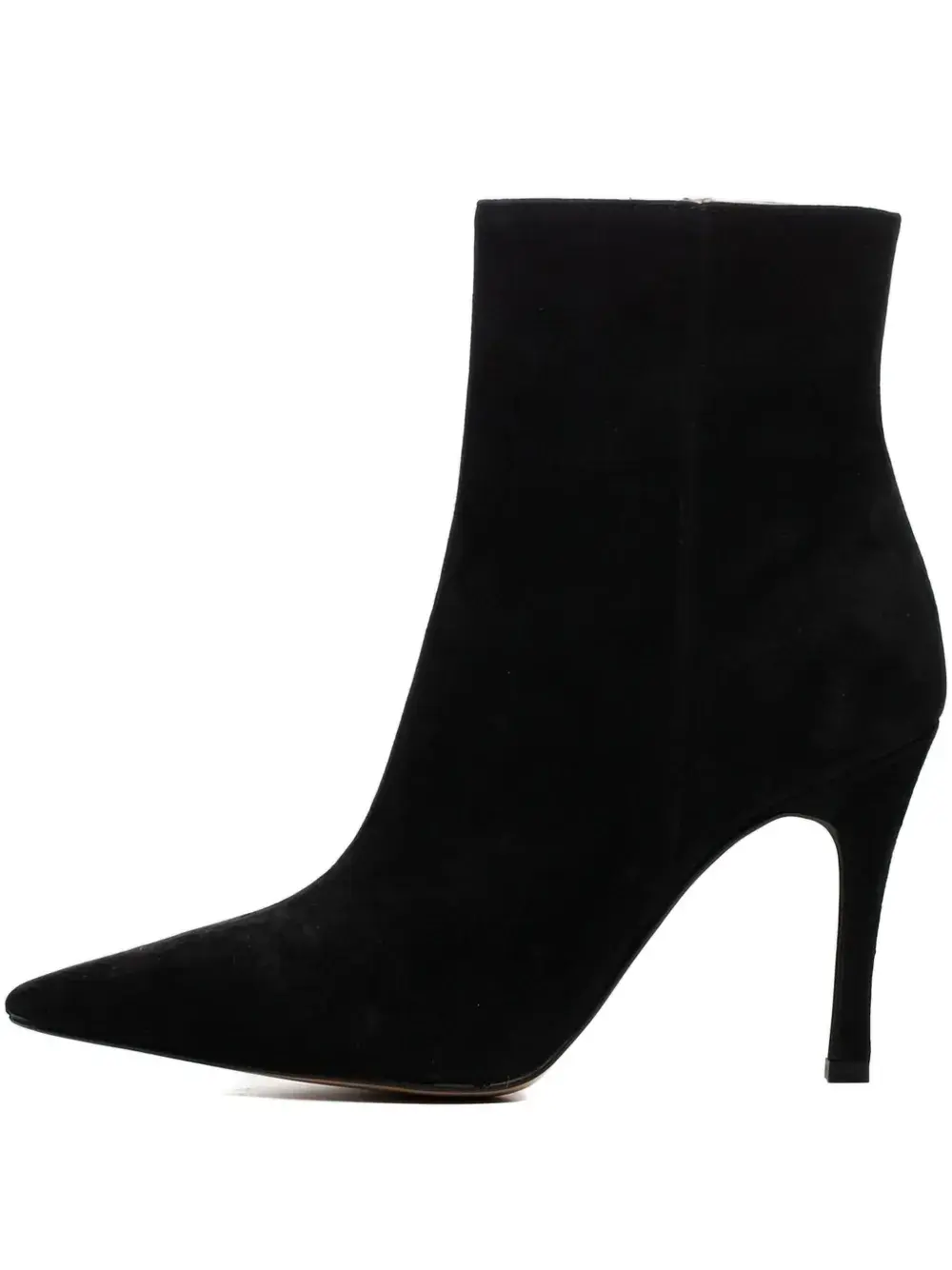 Черная застежка-молния сбоку, каблук-шпилька, кожаная подошва, острый носок