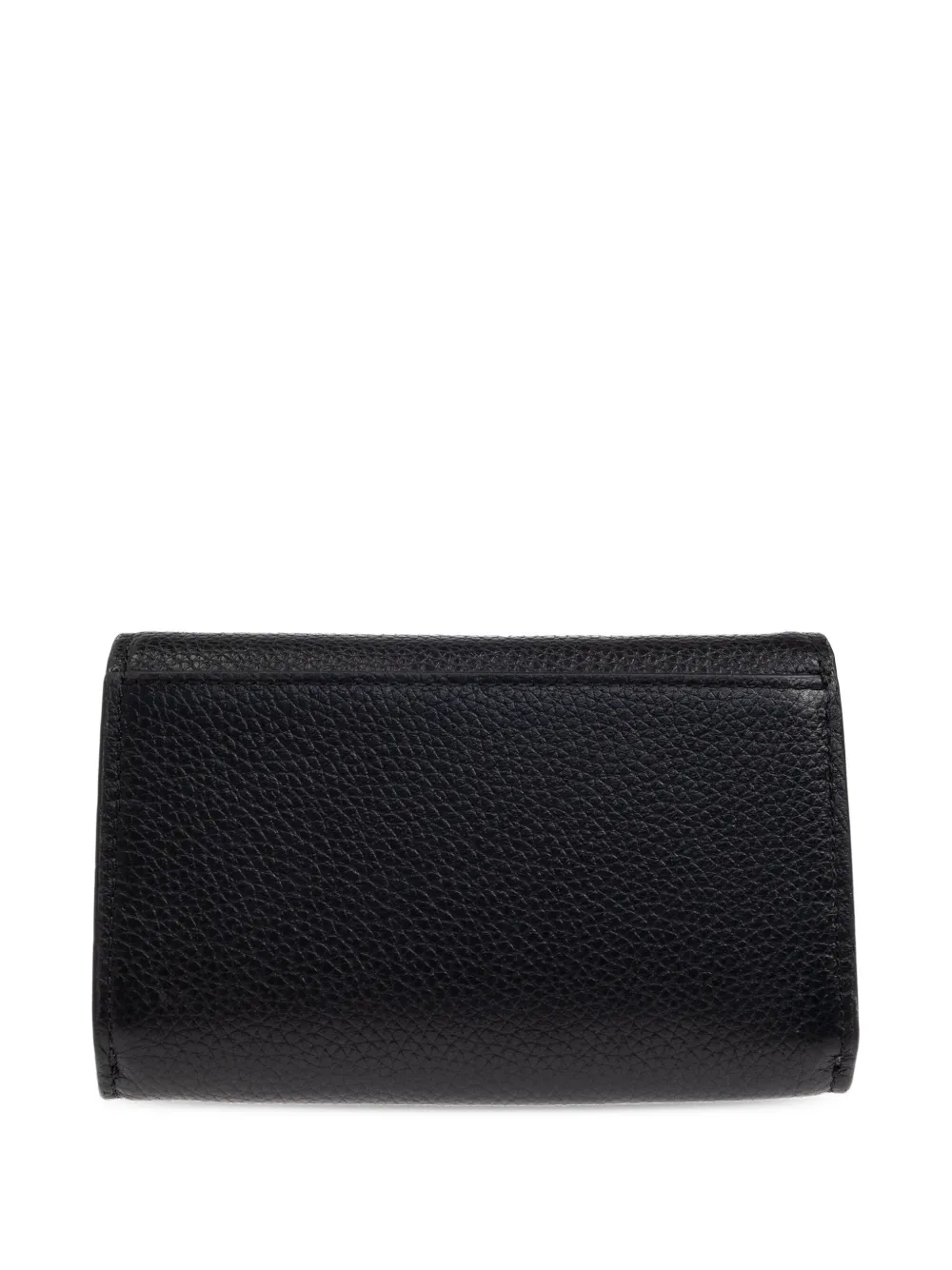 Черный золотой логотип, несколько отделений для карт, отделение на молнии, застежка на клапане