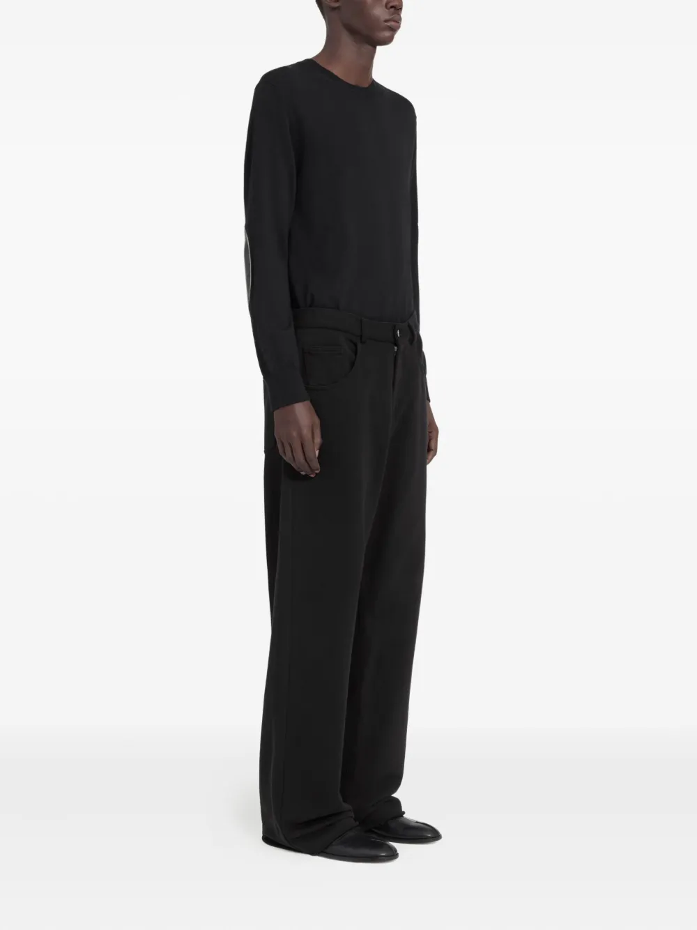 Черная потайная застежка на пуговицы и ширинку, шлевки для ремня, прямой брючины, прямой подол