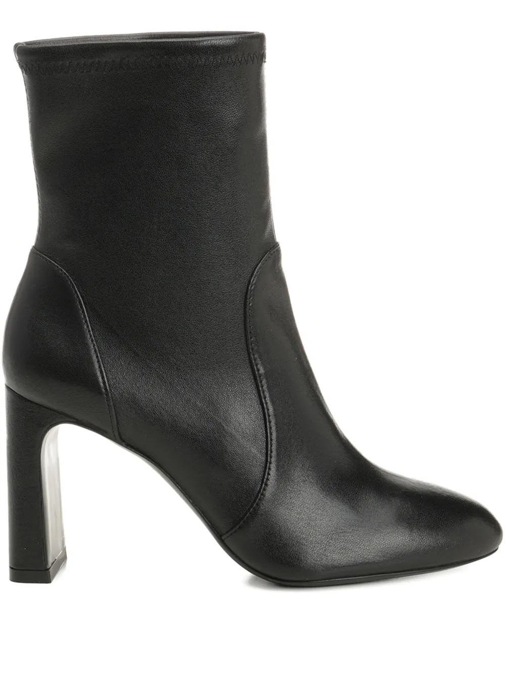 Черные туфли с миндалевидным носком, без молнии, с блочным каблуком и облегающим голенищем