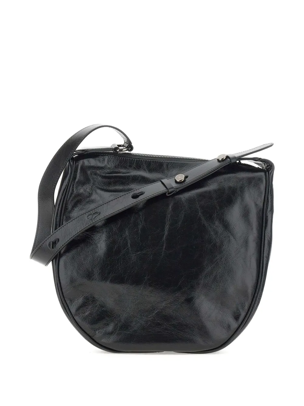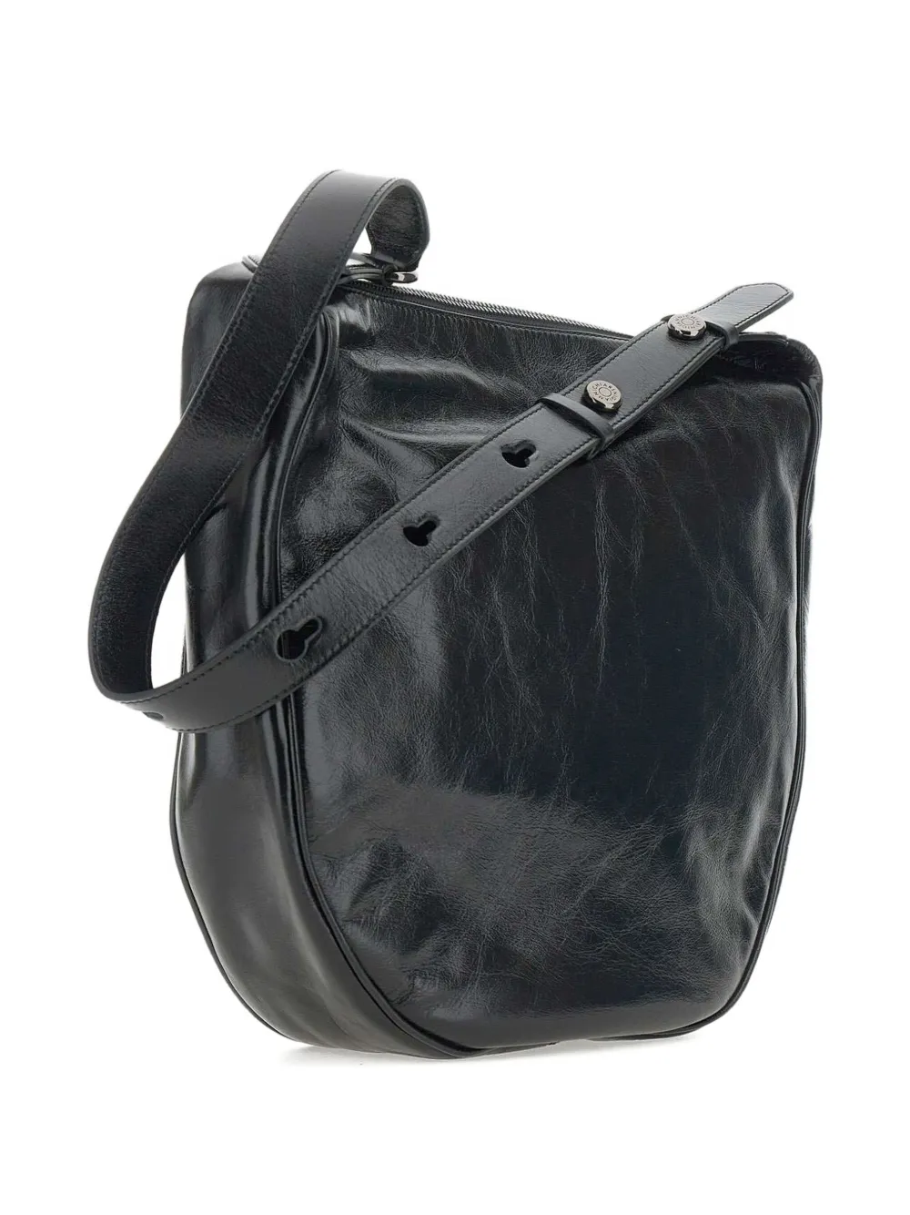 Черная кожаная застежка-молния, регулируемый ремешок, детали ремешка на пуговицах, изогнутая форма