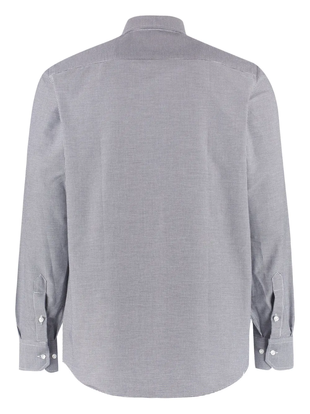 Серый, застежка на пуговицы, длинные рукава, острый воротник, узор в мелкую клетку, хлопок