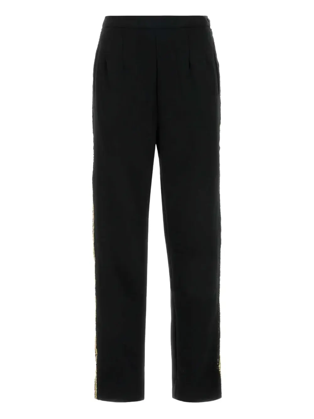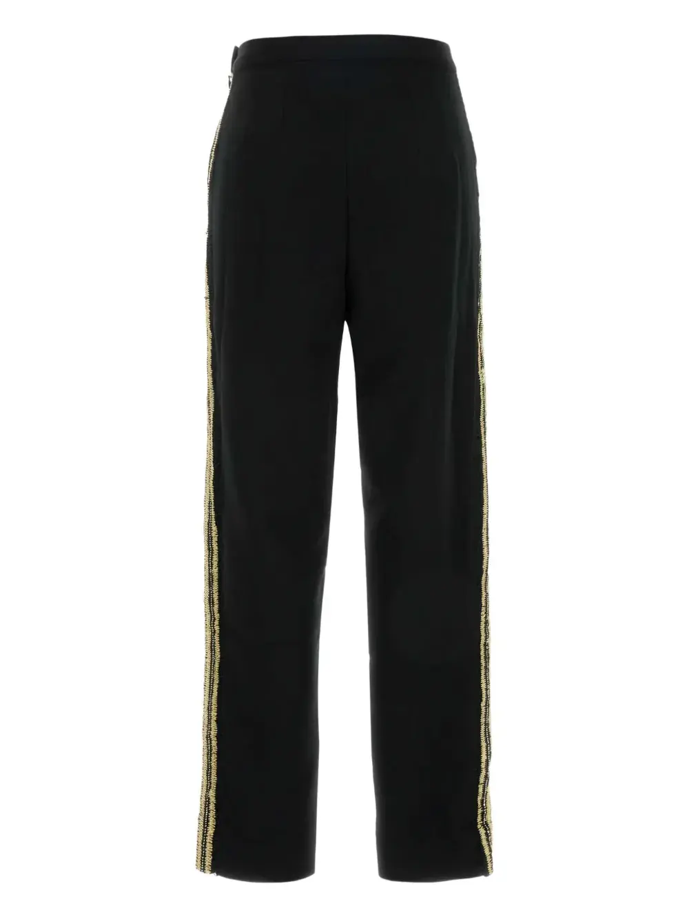 Черная складка спереди, золотистые полосы по бокам, потайная застежка-молния, прорезные карманы по бокам