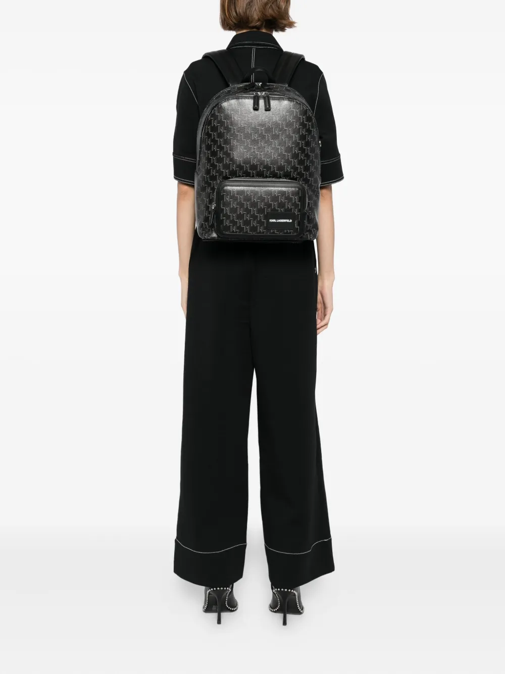 Рюкзак с монограммой и логотипом KARL LAGERFELD, черный