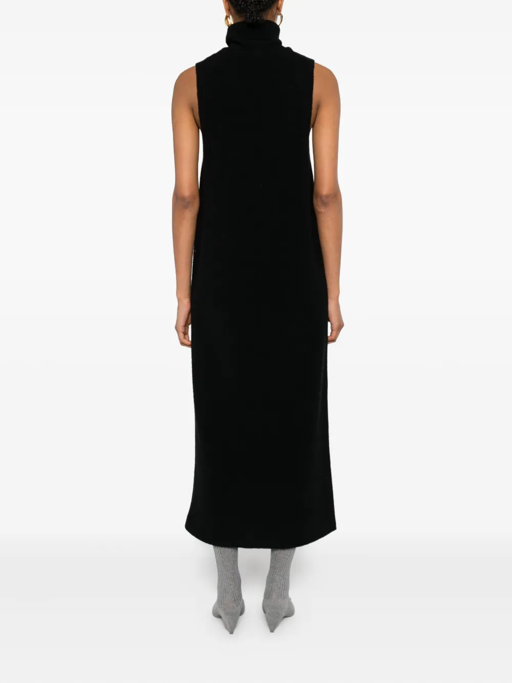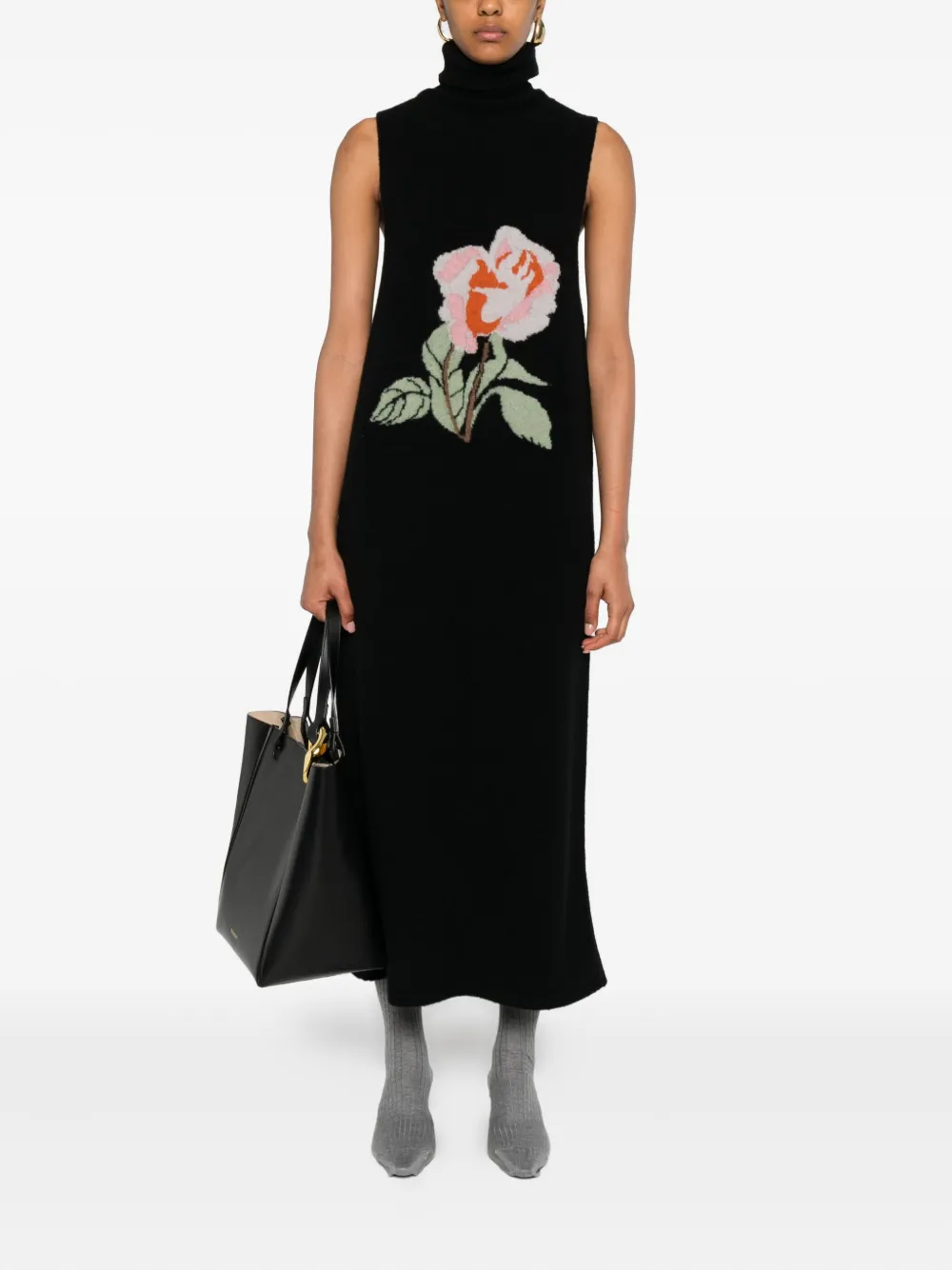 Платье с высоким воротником и вышивкой Nanushka, черный