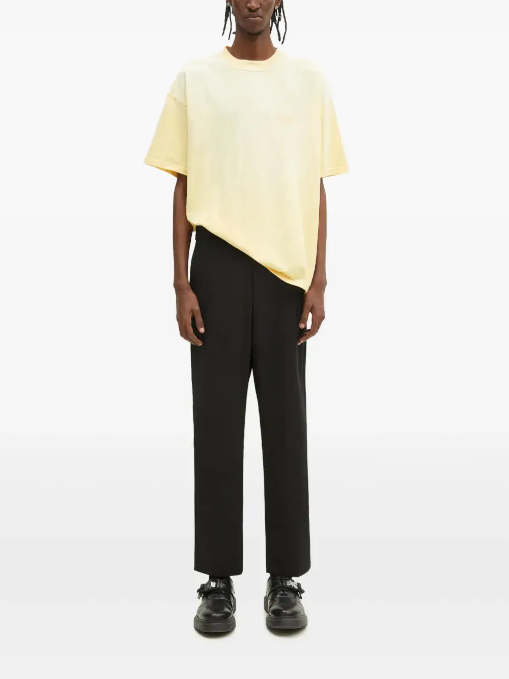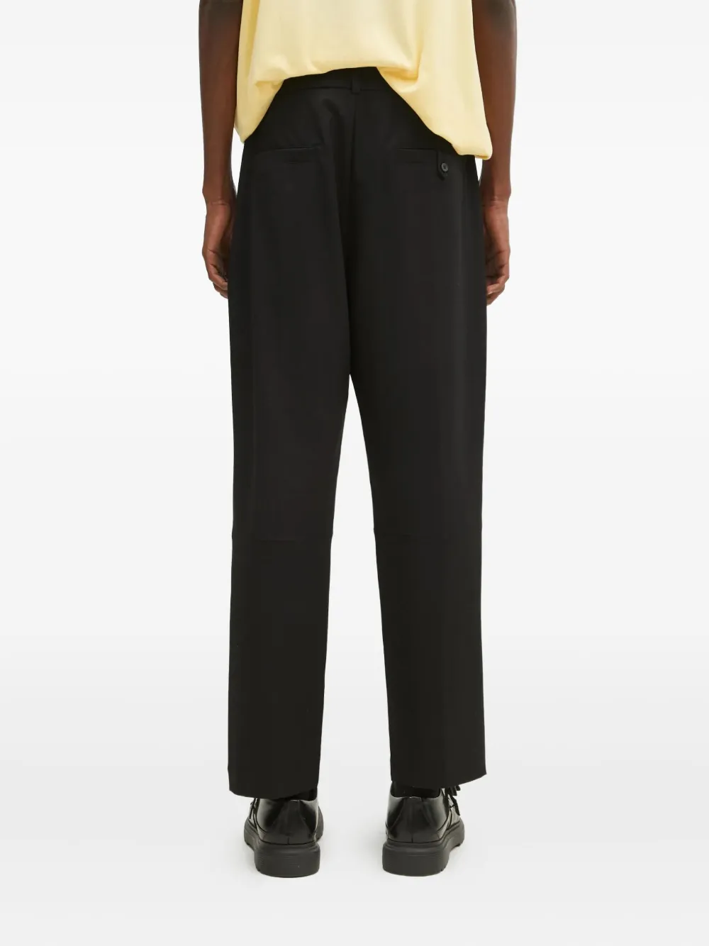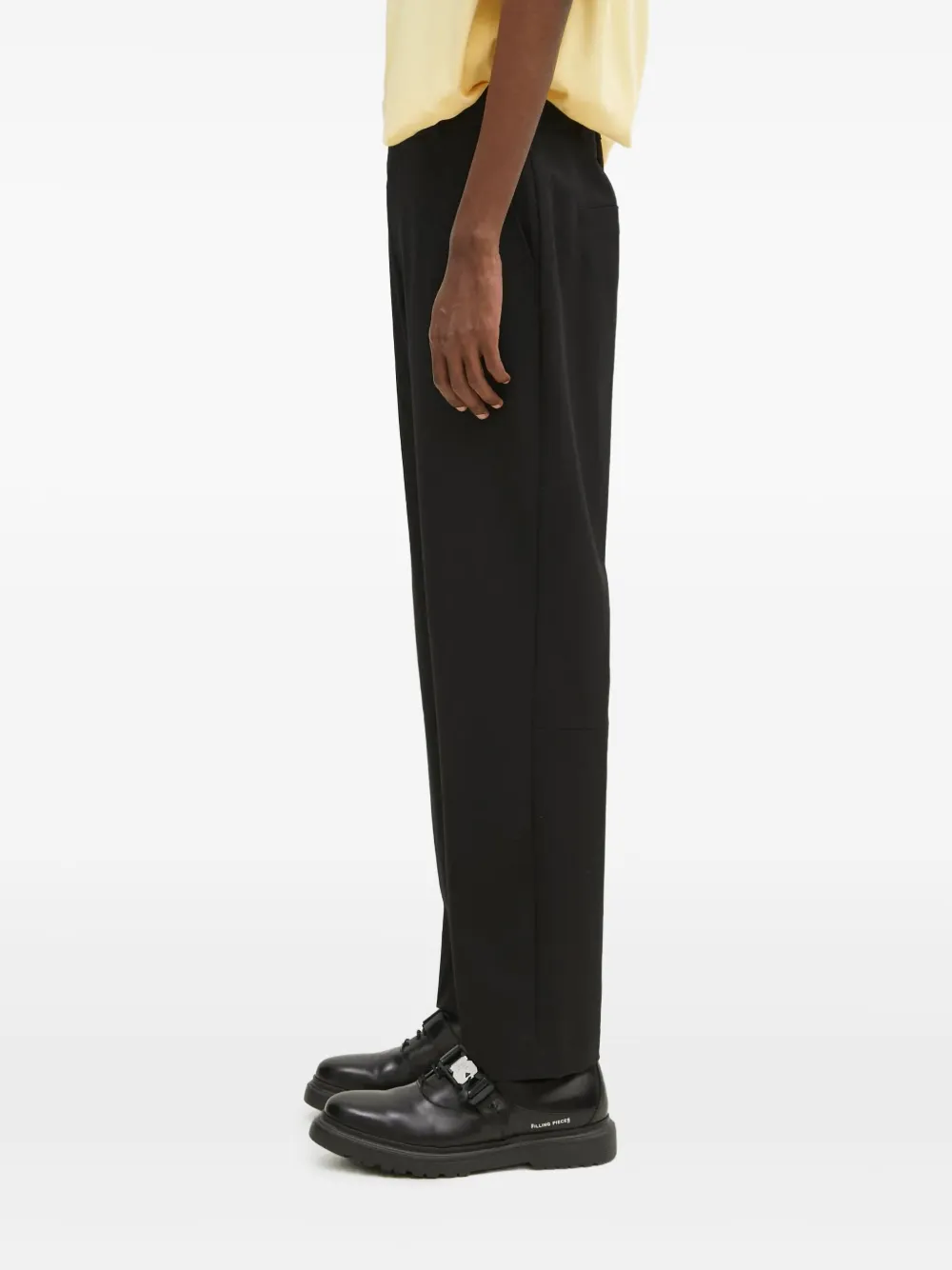 Черные плиссированные брюки спереди, прямые, средняя посадка, талия, застежка на пуговицы, прорезные карманы