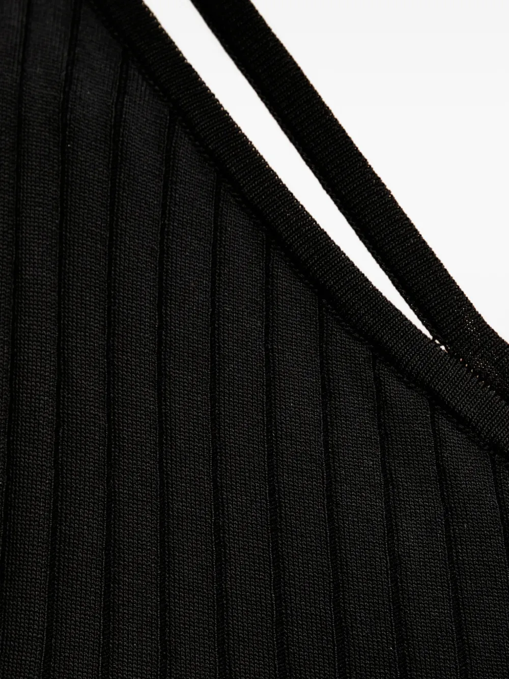 Черный ребристая вязка с асимметричным вырезом и прямым подолом без рукавов