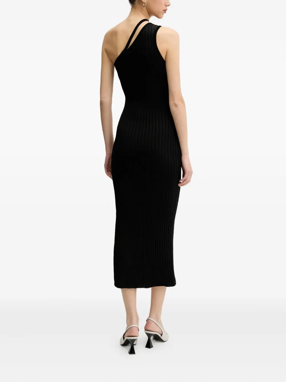 Платье миди из ребристой ткани на одно плечо HUGO, черный