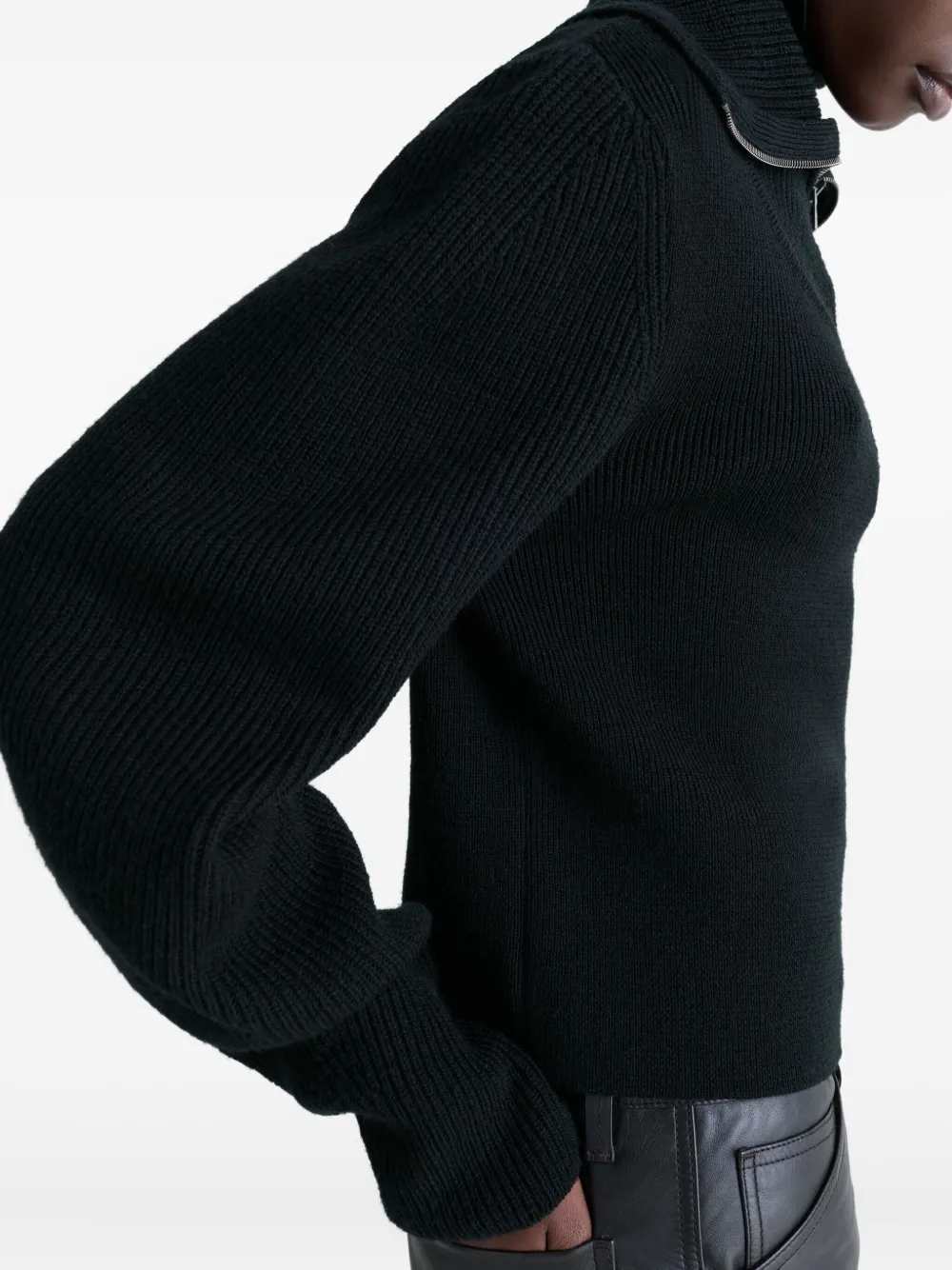 Свитер в рубчик с воротником на молнии LEMAIRE, черный