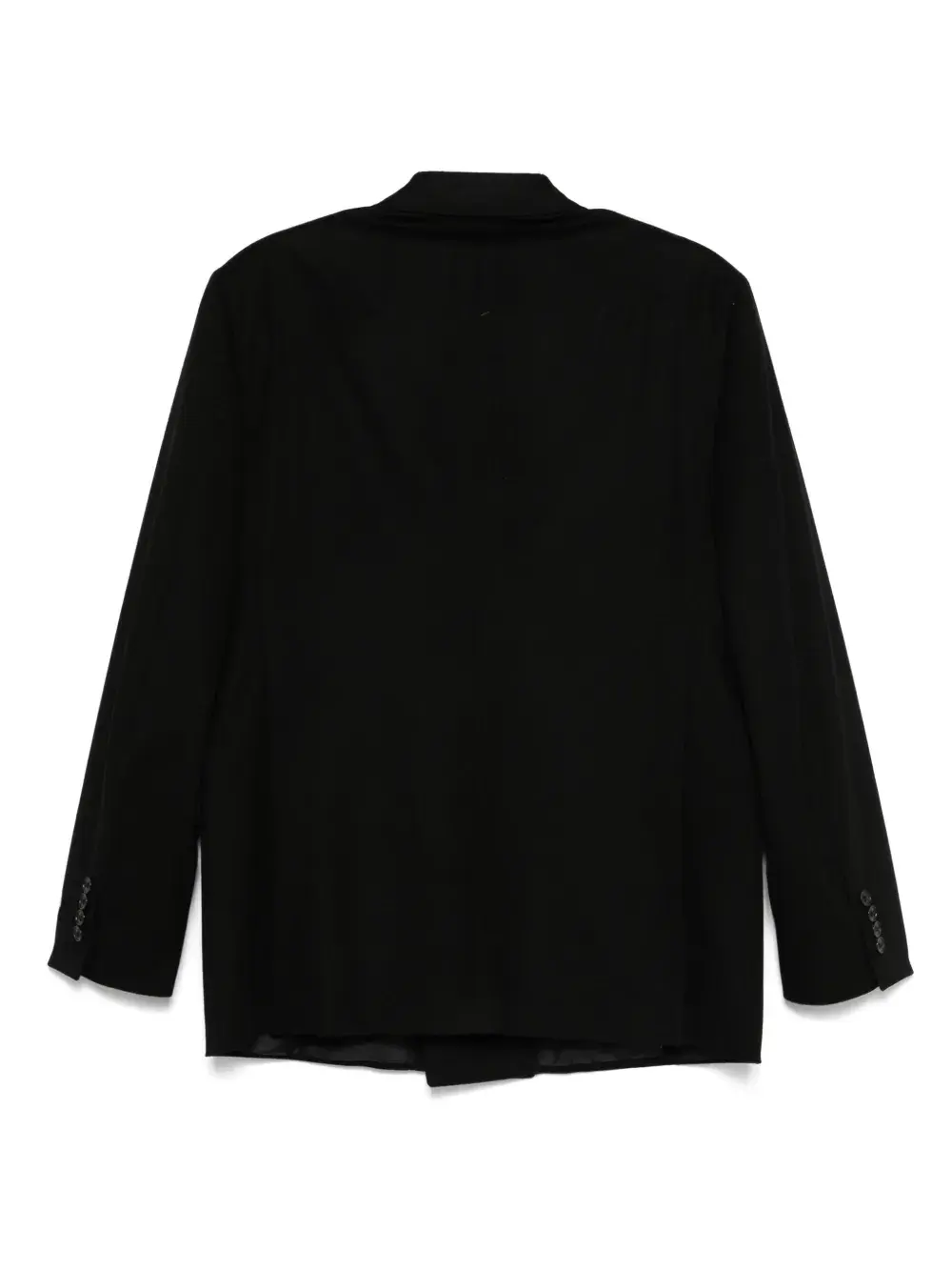 Черный двубортный пиджак с застежкой на пуговицы, длинные рукава, застегивающиеся на пуговицы манжеты