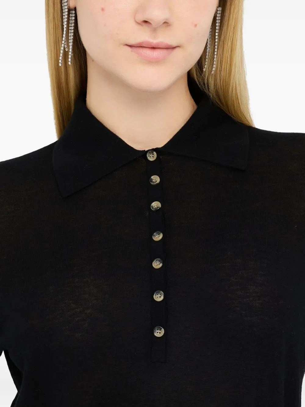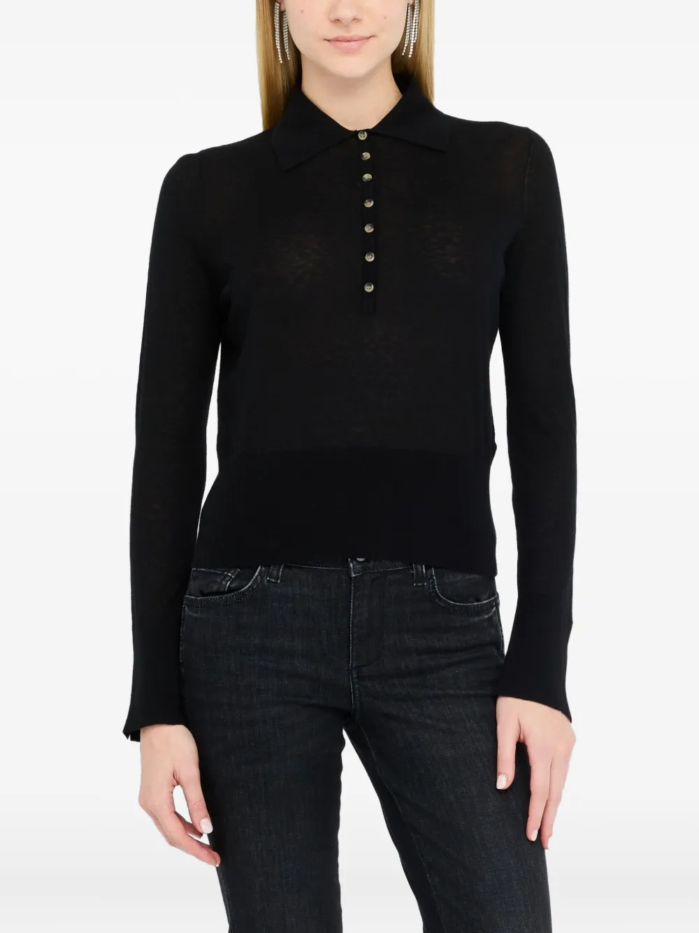 Черная водолазка с застежкой на пуговицы, длинные рукава, ребристые края