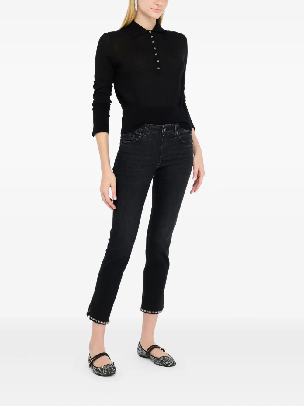 Ребристый свитер с воротником-поло LIU JO, черный