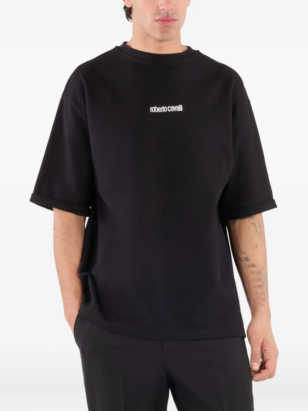 Футболка с вышитым логотипом Roberto Cavalli, черный 43 395₽