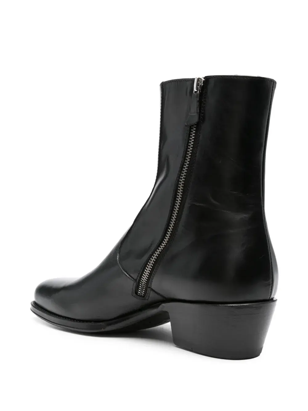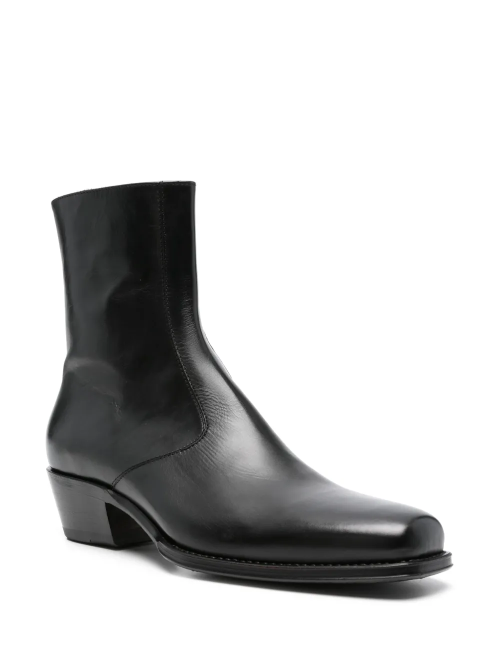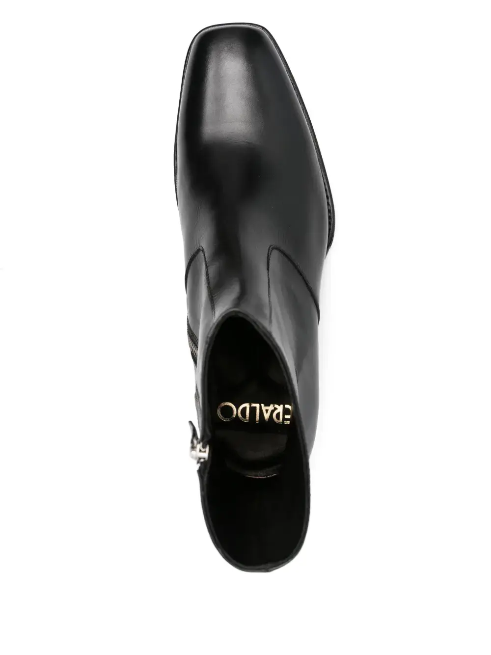 Черная застежка-молния сбоку, фирменная кожаная стелька, кожаная подошва, квадратный носок