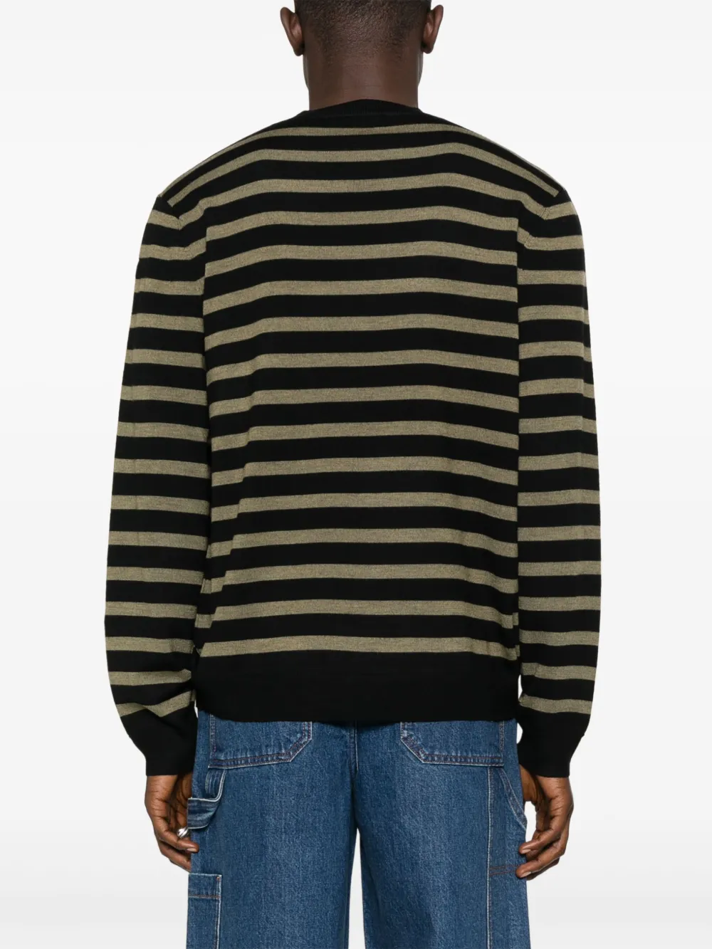 Черная вертикальная полоса, вышивка, круглый вырез, длинные рукава