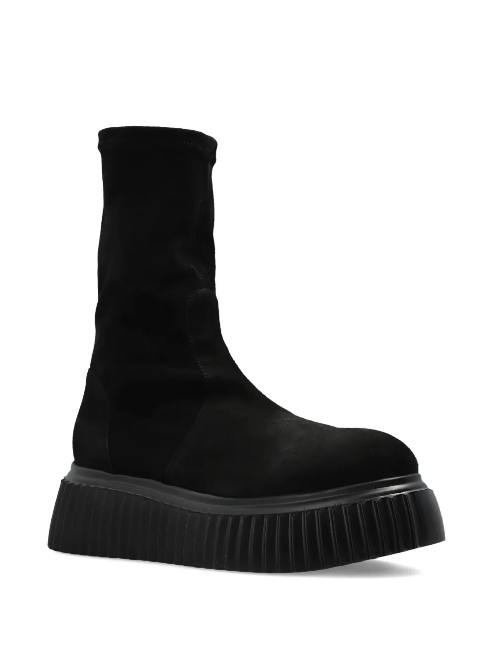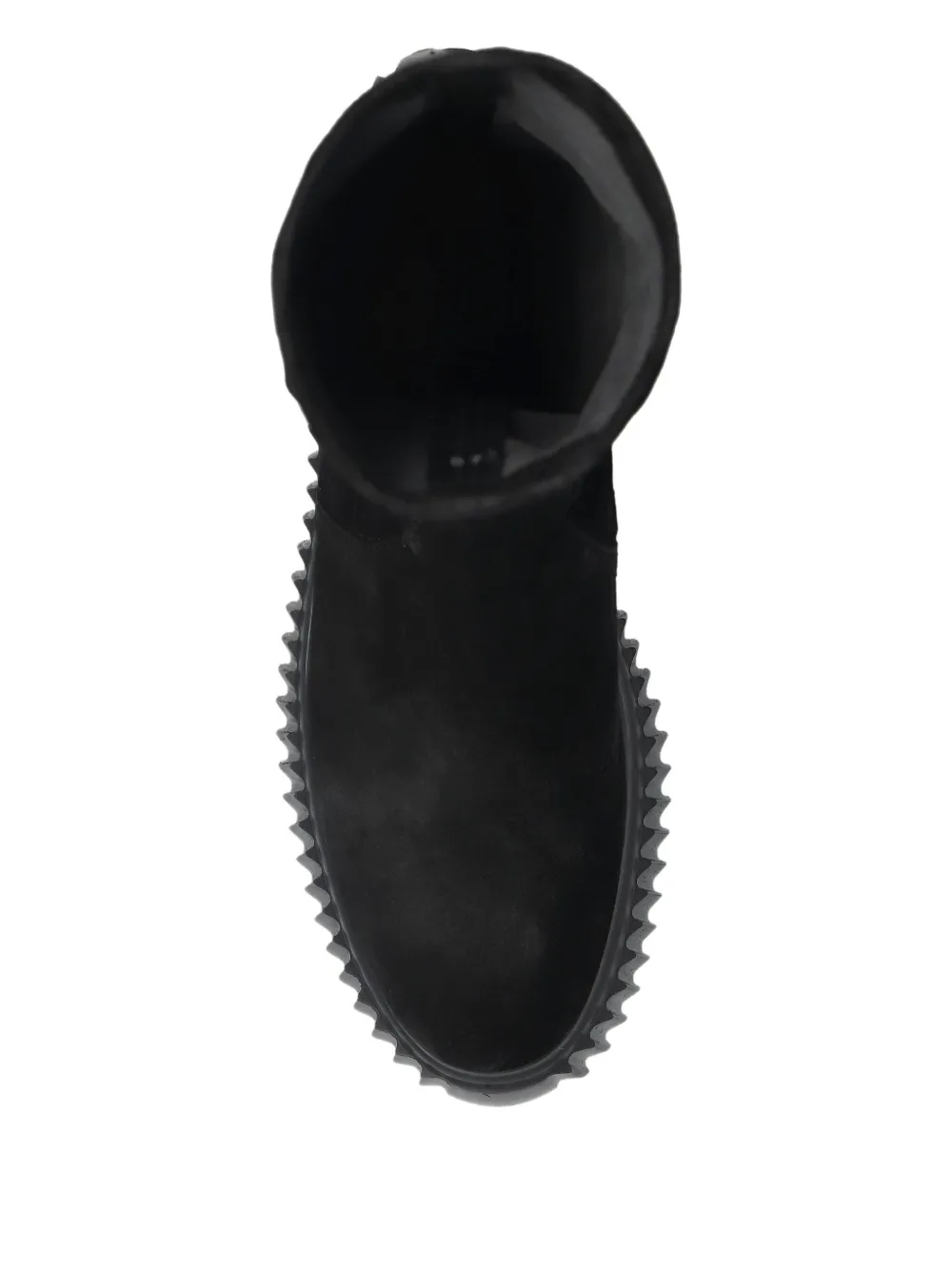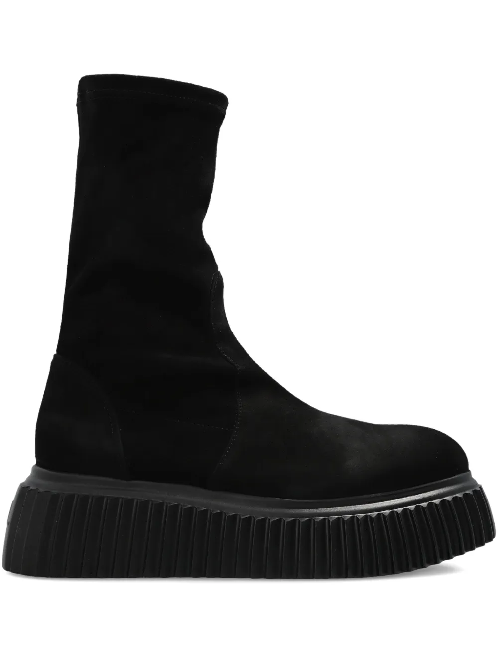Черный носок, массивная расклешенная подошва, ребристые детали