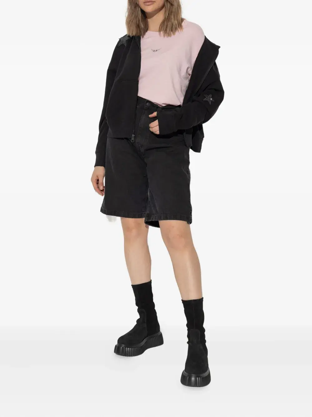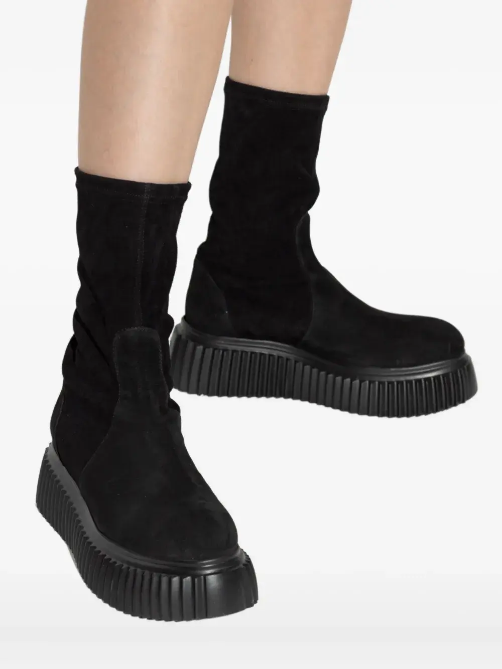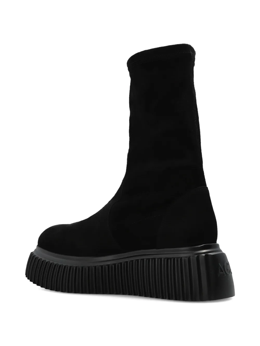 Черный носок, массивная расклешенная подошва, ребристые детали
