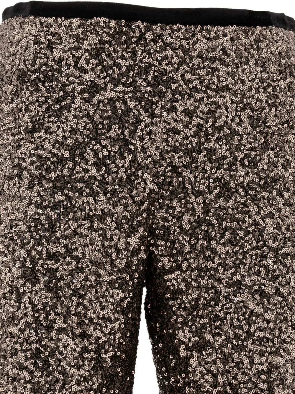 Черно-серые пайетки, расклешенные брюки, высокая талия, застежка-молния