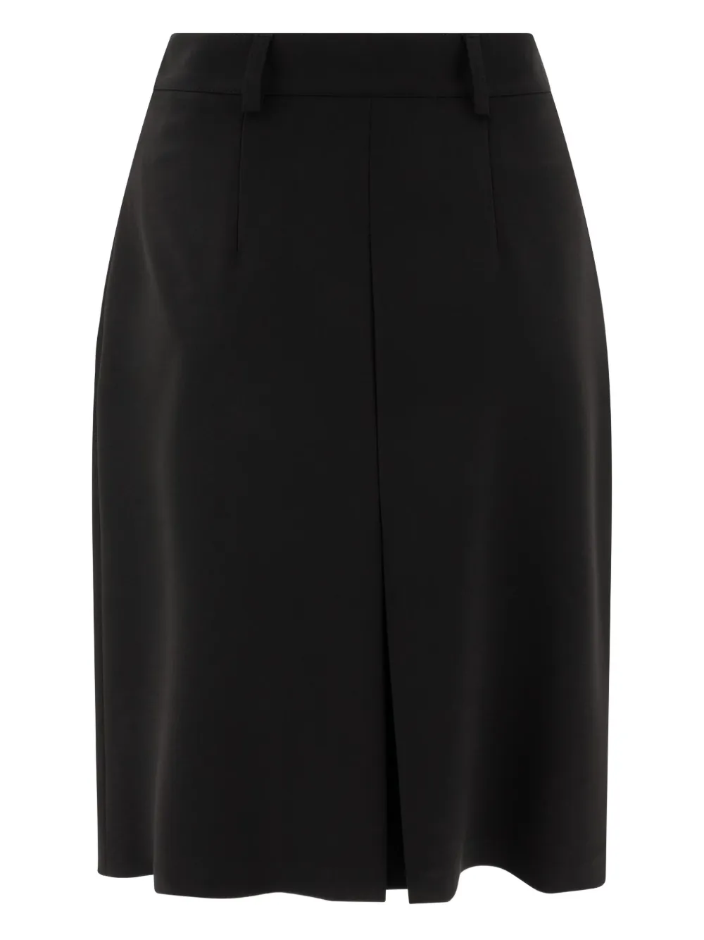 Черная центральная складка, прямой подол, потайная застежка-молния, высокая талия