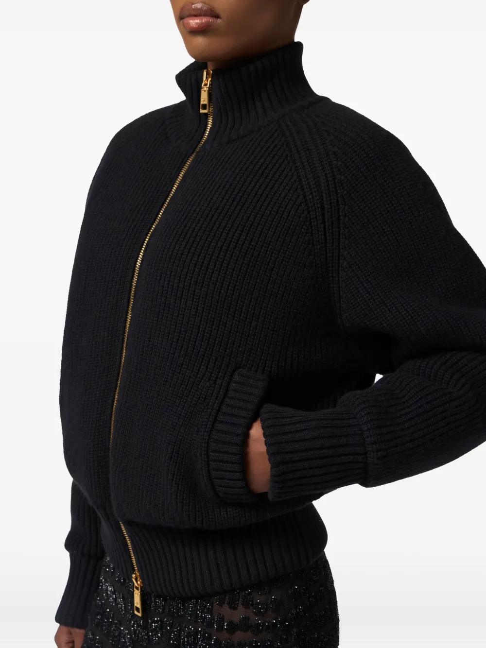 Бомбер в рубчик на молнии Elisabetta Franchi, черный