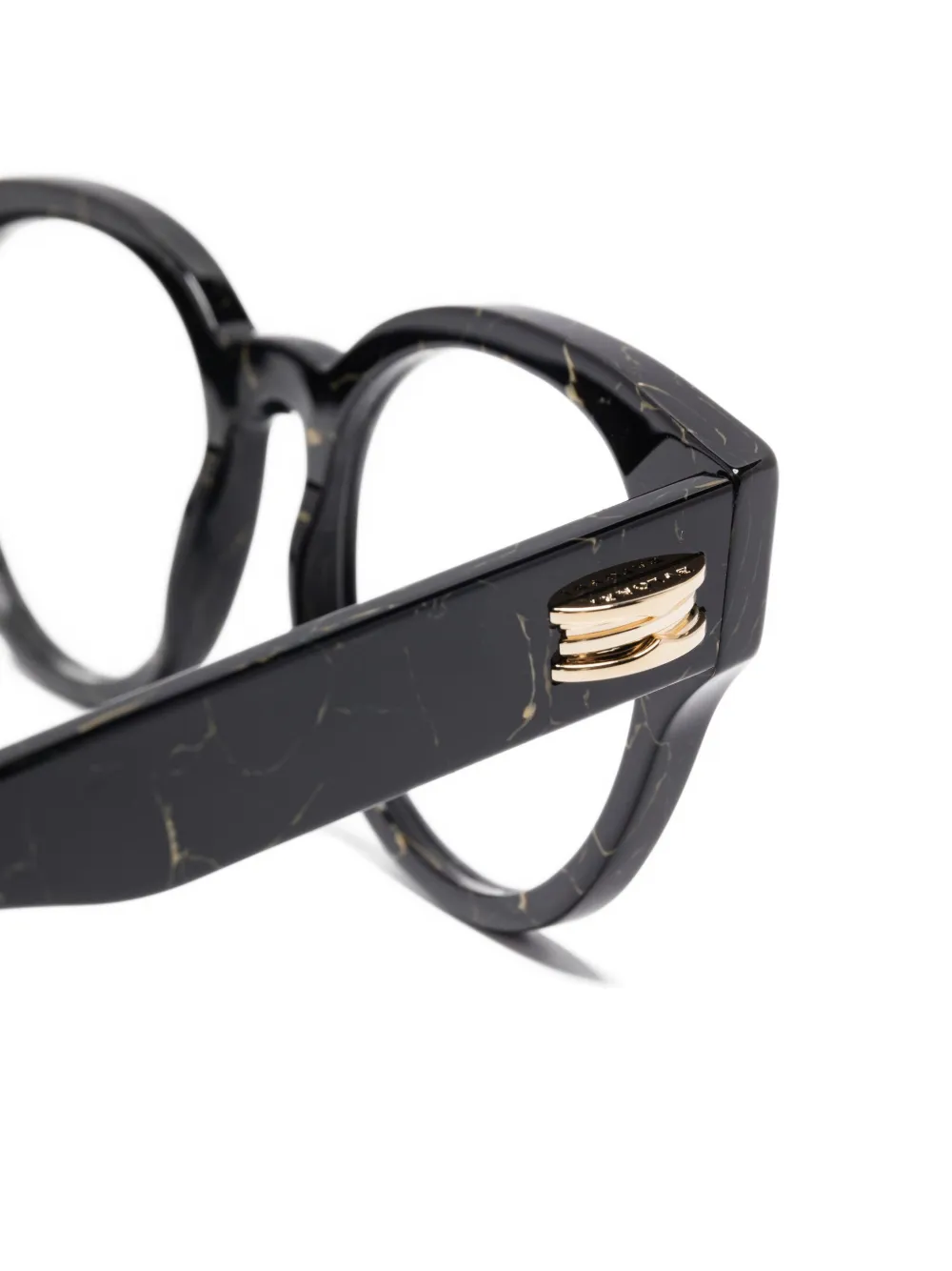 Круглая черная оправа с золотистым логотипом. Эти очки поставляются с защитным футляром. Все очки FARFETCH продаются в оправах без диоптрий.
