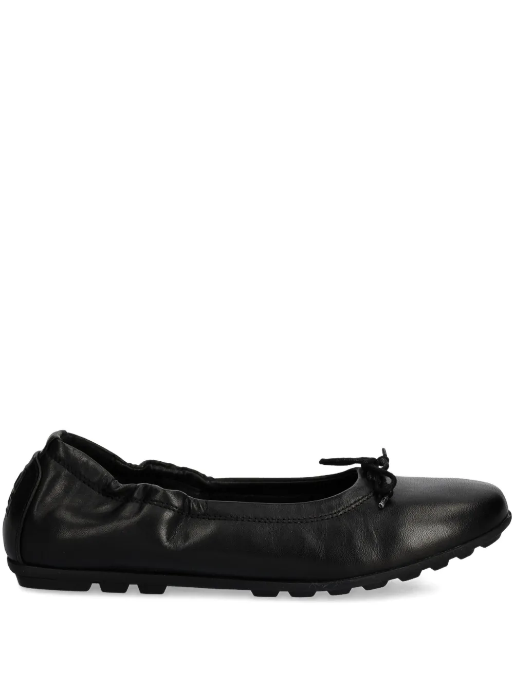 Верх из черной кожи, эластичная задняя часть, бант, круглый носок