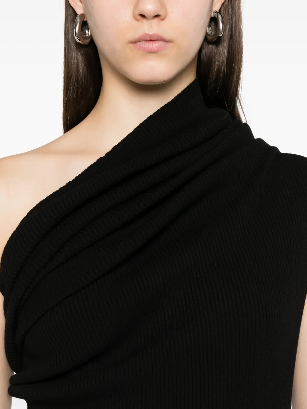 Платье из ребристой ткани на одно плечо Rick Owens, черный