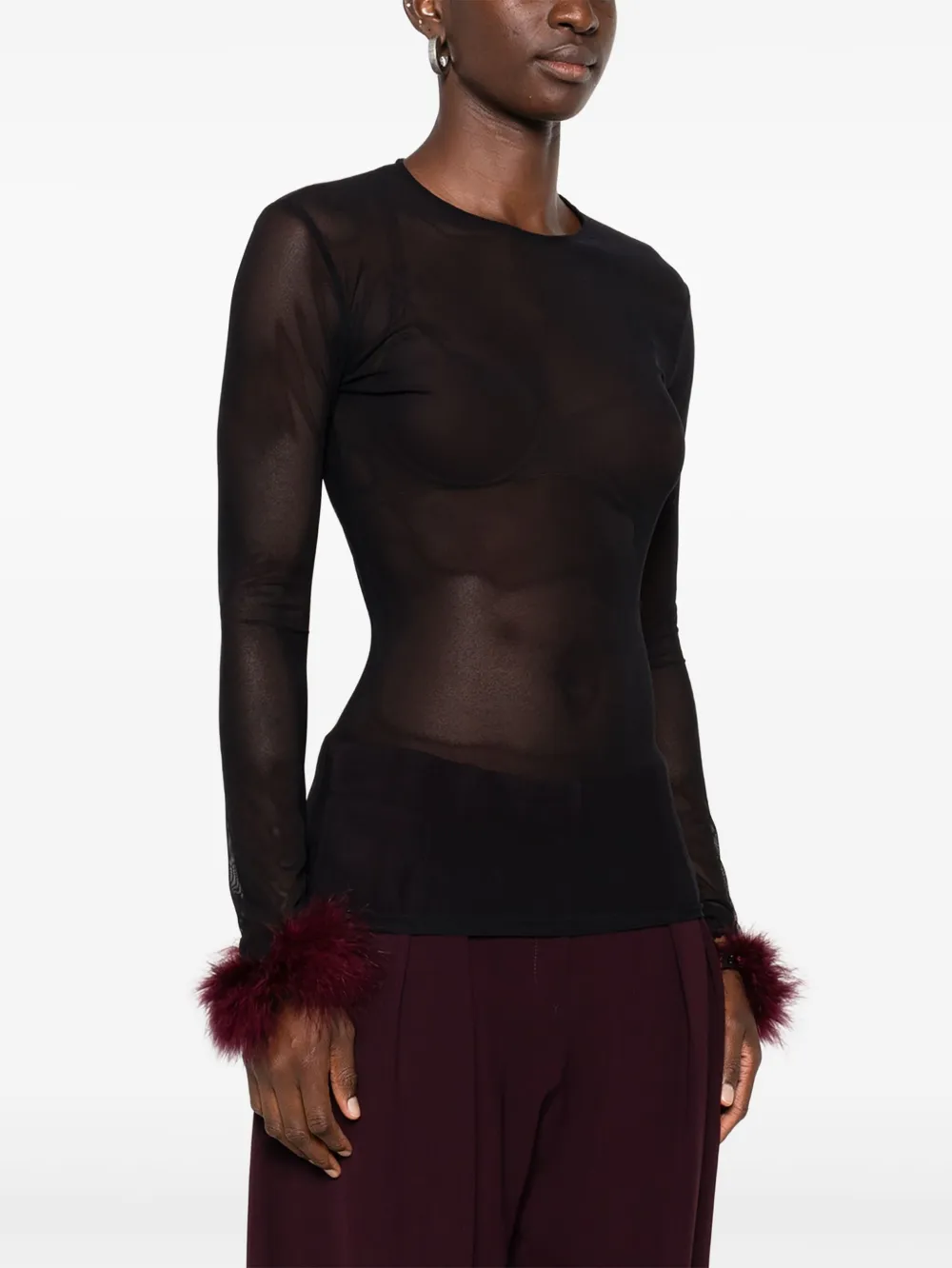 Топ с сетчатыми вставками и манжетами из перьев Mugler, черный