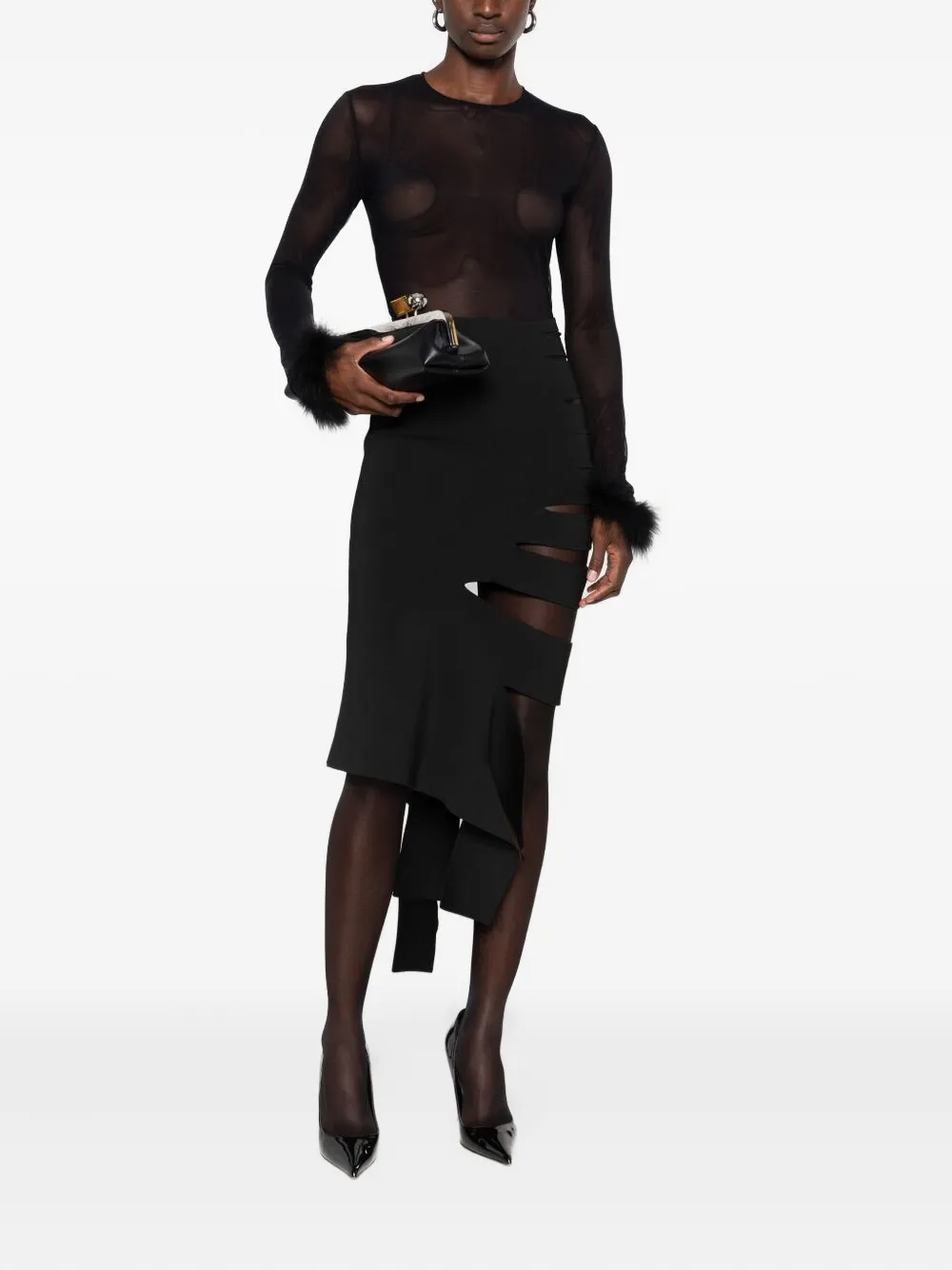 Топ из сетки с перьевыми манжетами Mugler, черный