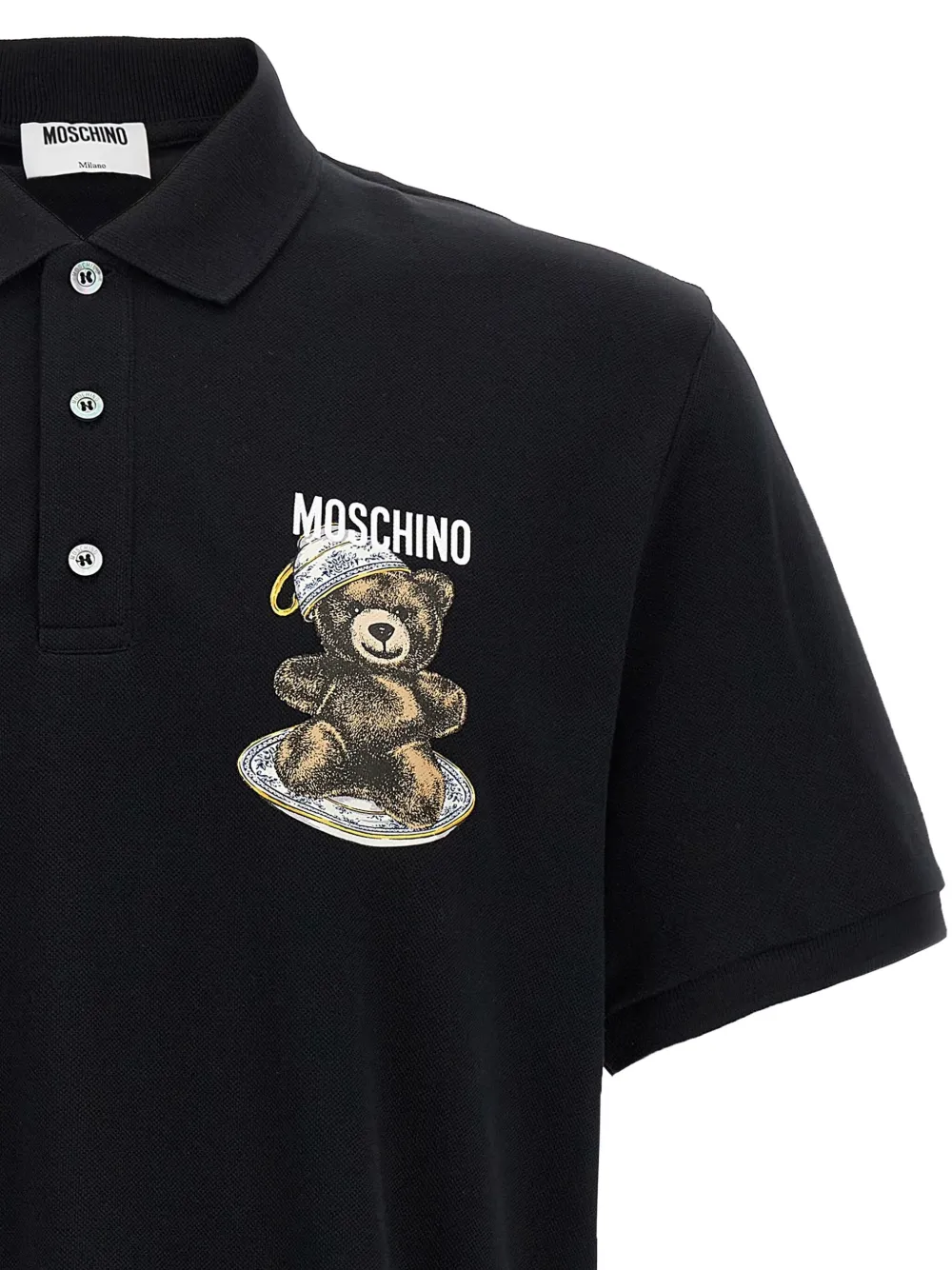 Рубашка-поло пике с принтом Тедди Moschino, черный