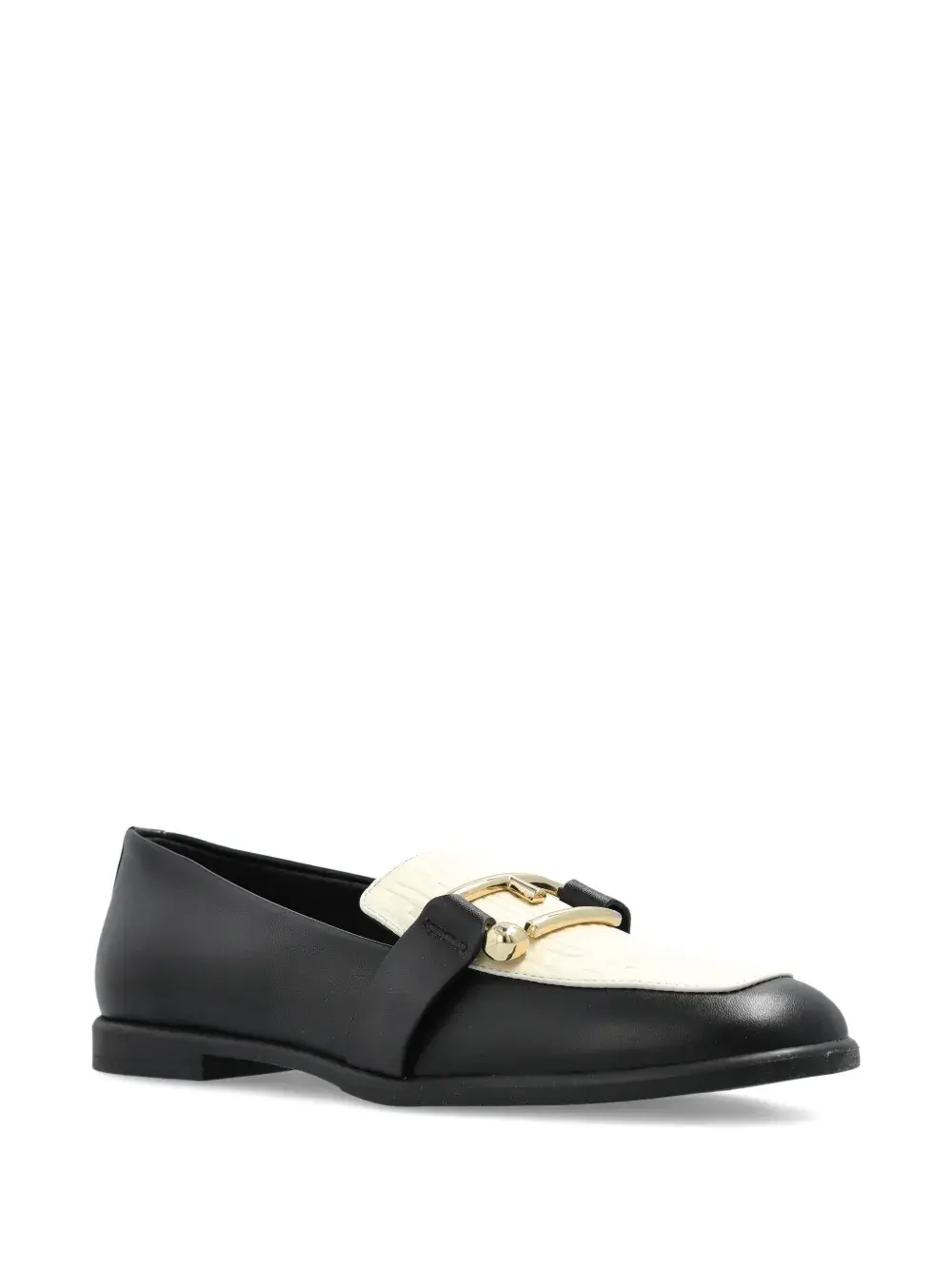 Черные, золотистые, с пряжкой, плоская подошва, круглый носок