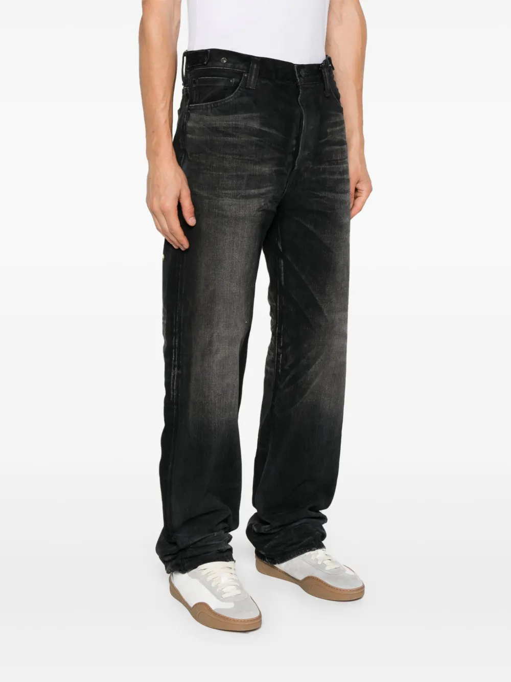 Черная выцветшая потертая модель с пятью карманами и застежкой на пуговицы